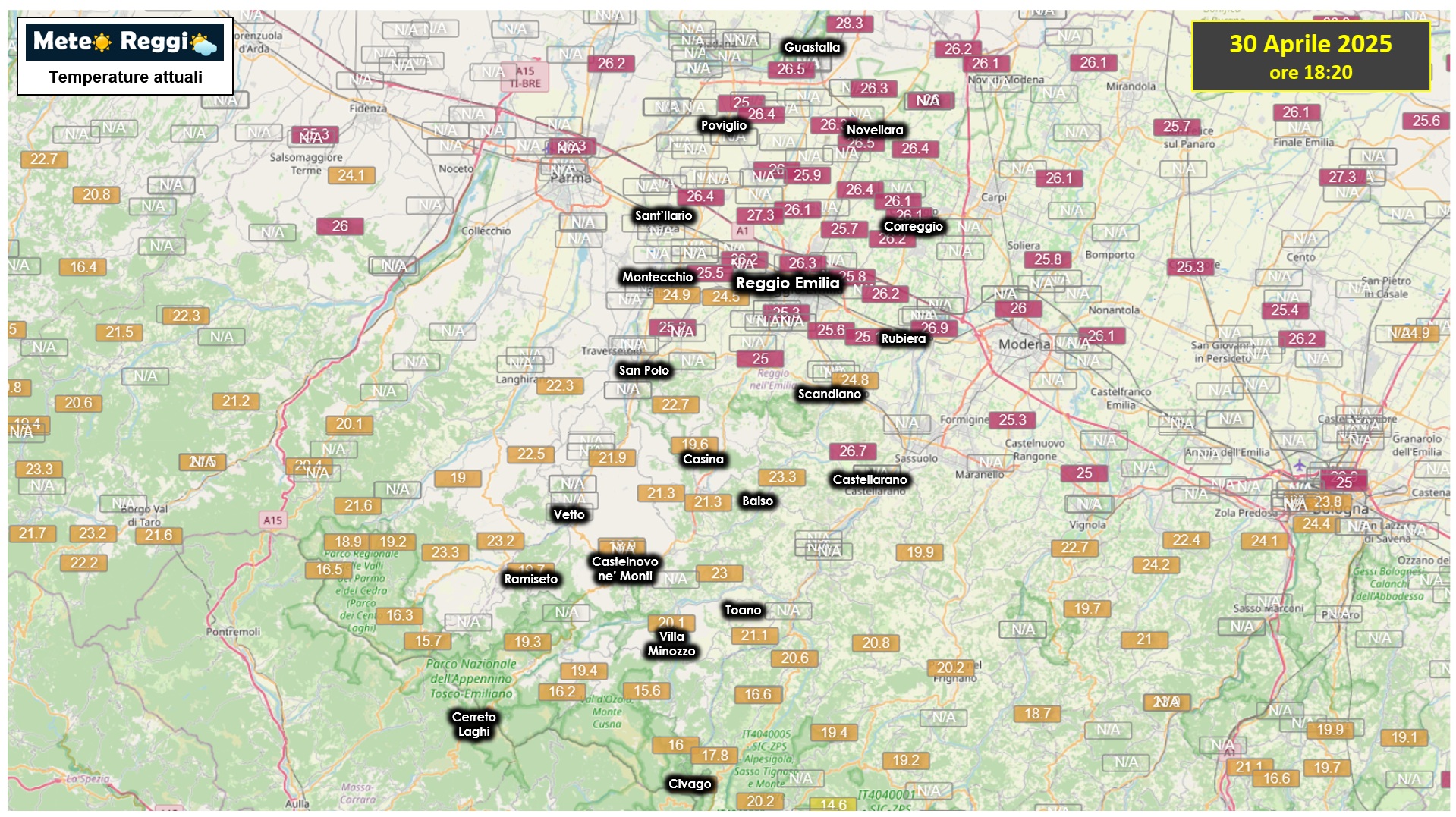 26,5°C a Sant'Ilario d'Enza
