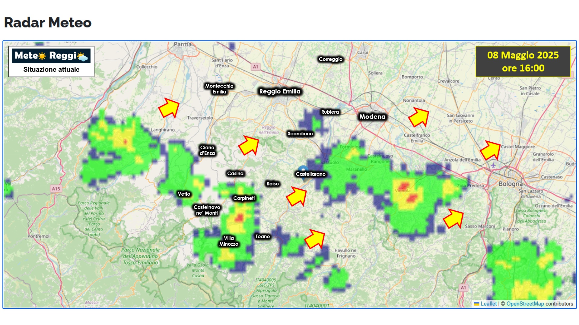 Una seconda linea, però, ha preso forma nell'ultima ora e dalla montagna si è portato sulla Collina. Forti piogge stanno interessando la media valle del Secchia e l'alta valle del Tresinaro.