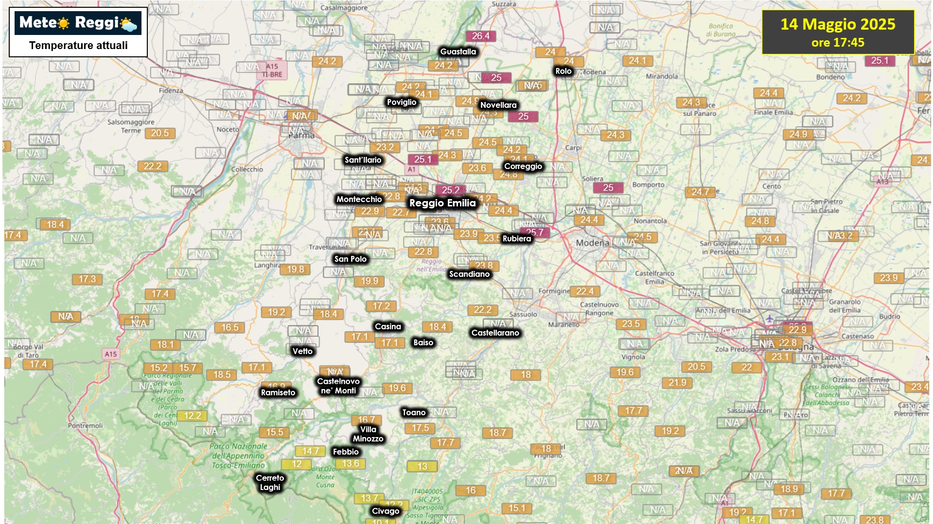 25,0°C a Sant'Ilario d'Enza