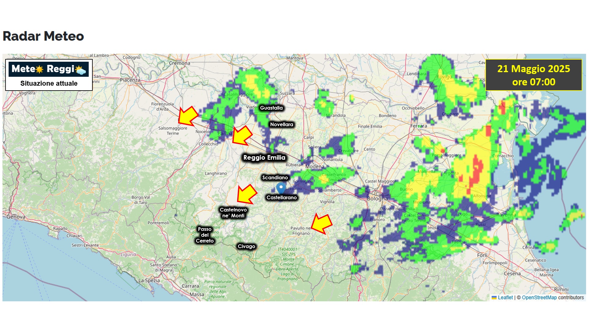Avvio di giornata uggioso su tutto il reggiano con nebbie da nuvole basse in Appennino e postumi di pioggia sulla Pianura che da nord-est si spingono verso la Pedecollinare.