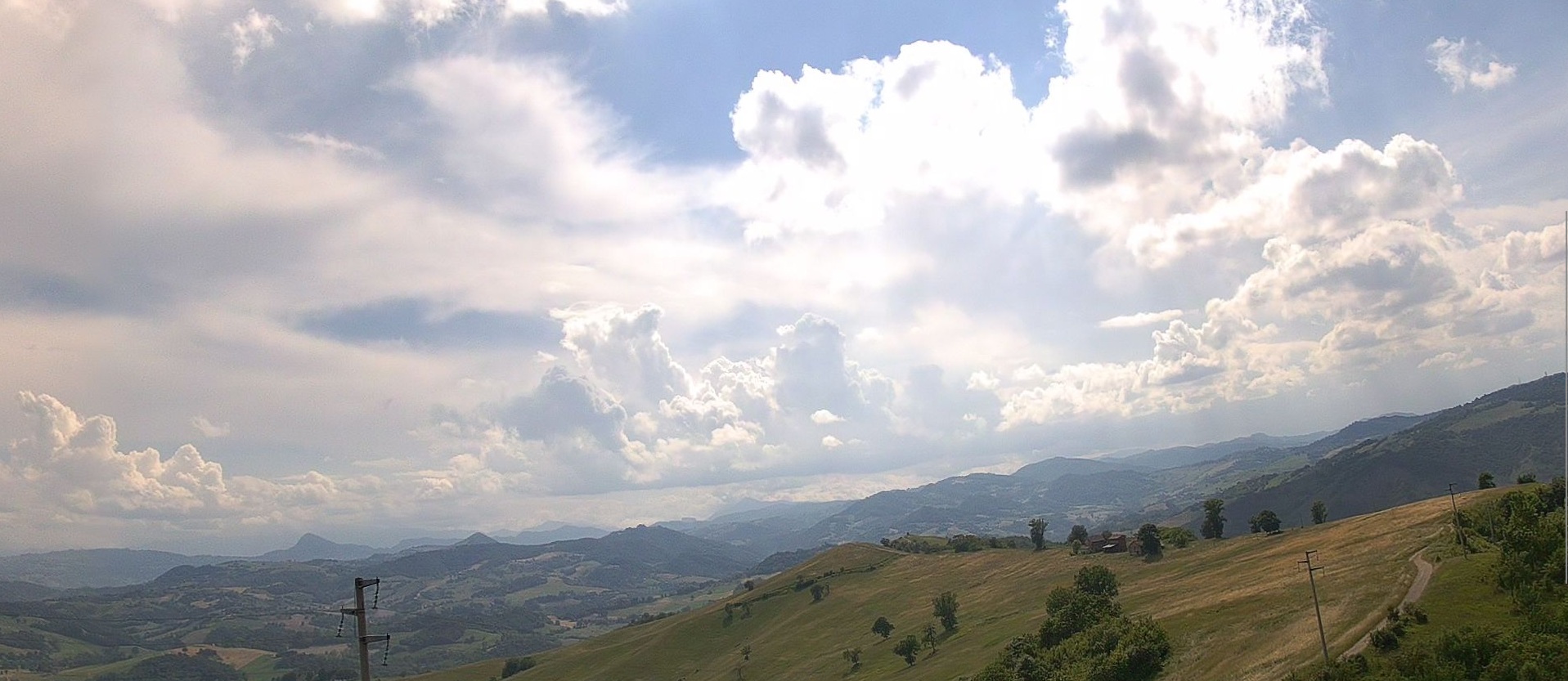 Per il momento tutto tranquillo il cielo lungo il tragitto della tappa del Giro d'Italia che attualmente ha lasciato Villa Minozzo in direzione Castelnovo ne' Monti.