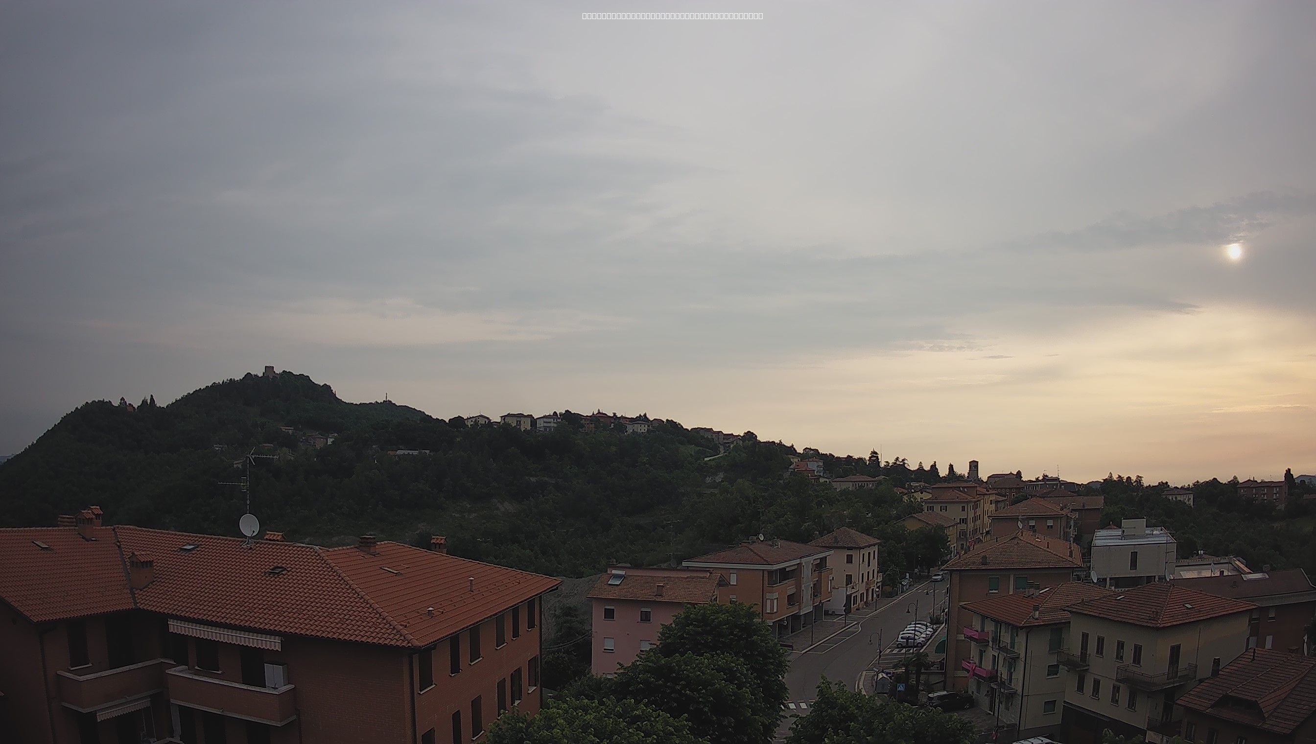 Cielo pallido e velato su tutto il reggiano con un Sole che fatica molto a trasparire ad est. Ad ovest, invece, il cielo è più minaccioso e grigio. Tra parmense e piacentino, infatti, abbiamo una vivace attività temporalesca e piovosa che muove verso nord-est.