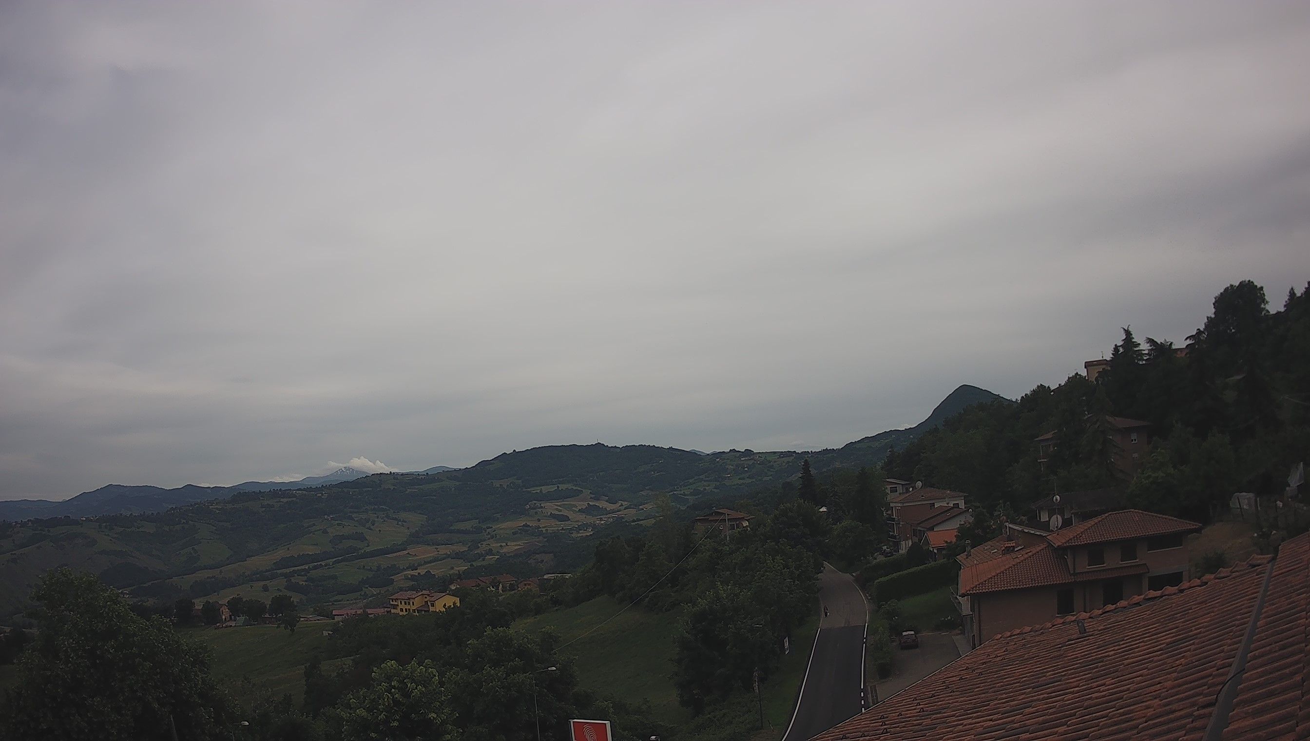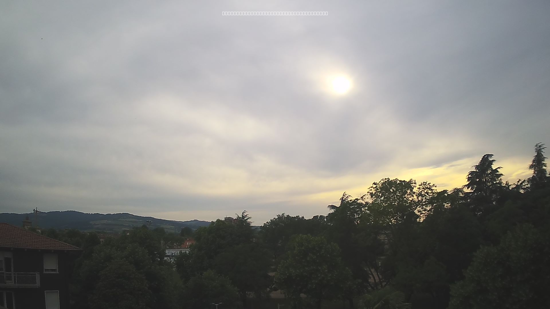 I 21°C di ieri erano il risultato di un’aria più fresca e umida, con cieli coperti e temporale tardo mattutino. Oggi abbiamo a che fare con un vento caldo e secco di Favonio (35% di umidità contro i 65% di ieri) e il cielo lattiginoso visibile dalle nostre webcam non è dovuto a nubi vere e proprie, ma a strati sottili di nubi alte (cirri) e a una certa quantità di pulviscolo in sospensione, trasportato dal vento (tra cui i fumi degli incendi devastanti del Canada).