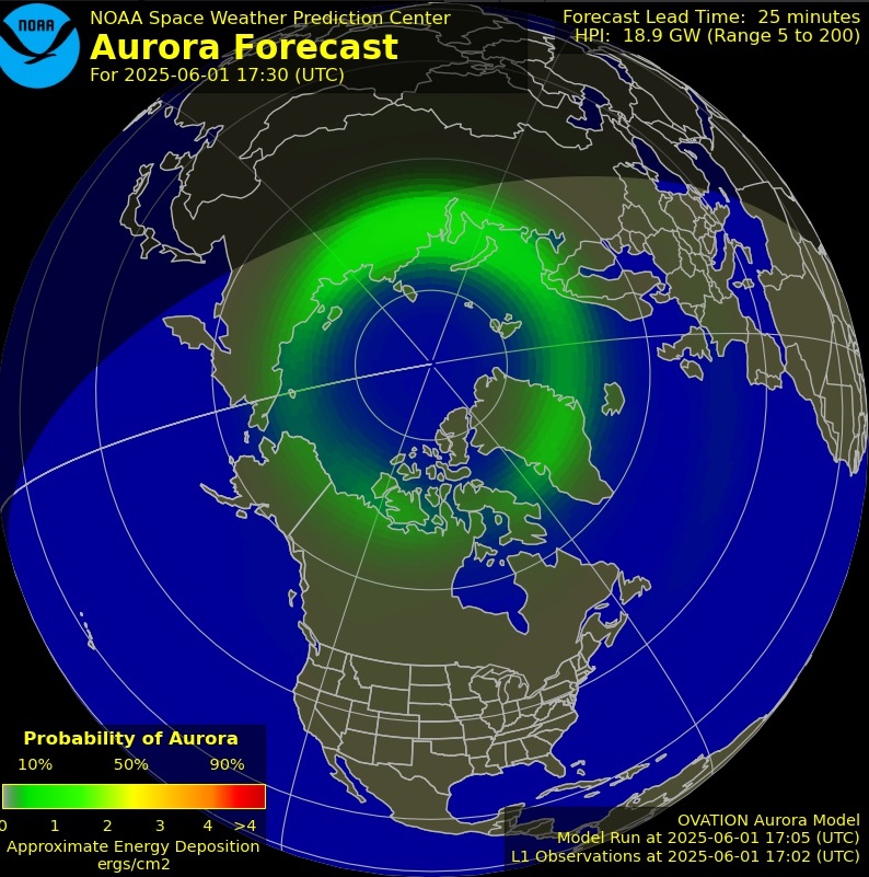 Attualmente abbiamo un brusco calo dell'attività con la tempesta che è scesa da G4 ad un pallido G1, ma di energia ne abbiamo ancora tanta in arrivo e queste "ondate" sono molto capricciose e difficili da interpretare. Sicuramente nelle prossime ore avremo un riacutizzarsi dei fenomeni ma per sapere se effettivamente si tradurranno in qualcosa di spettacolare dovremo attendere la notte.