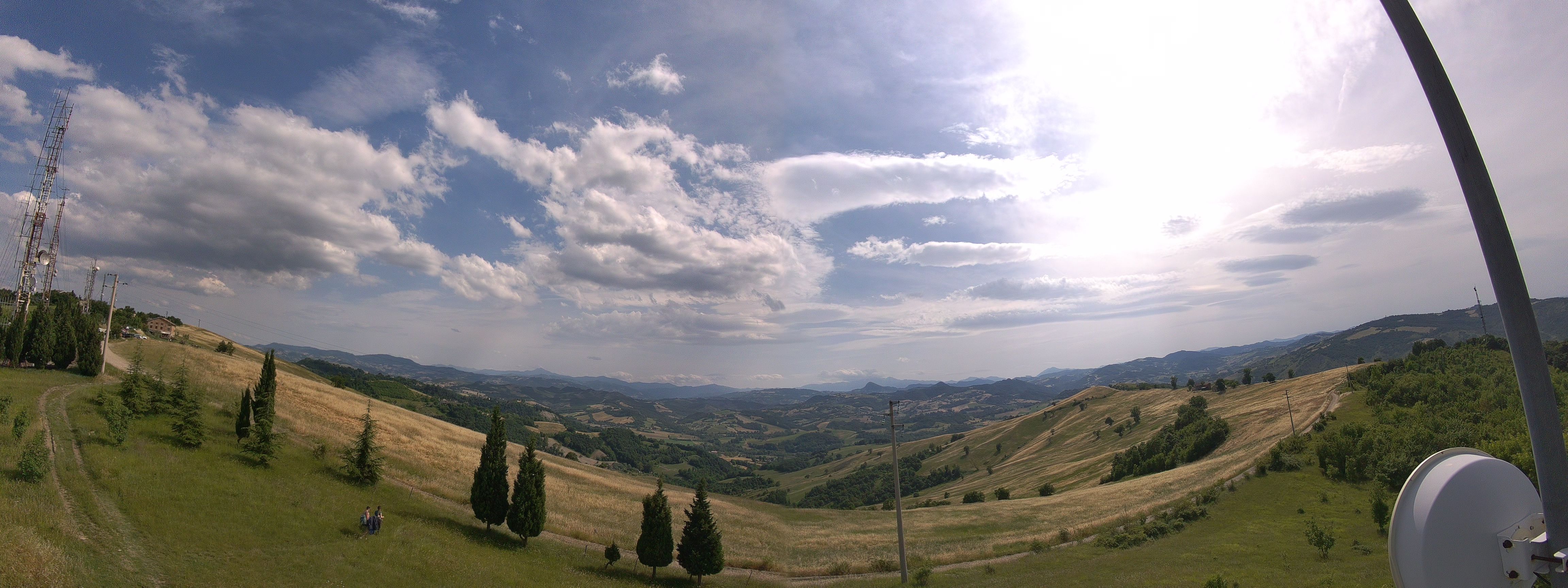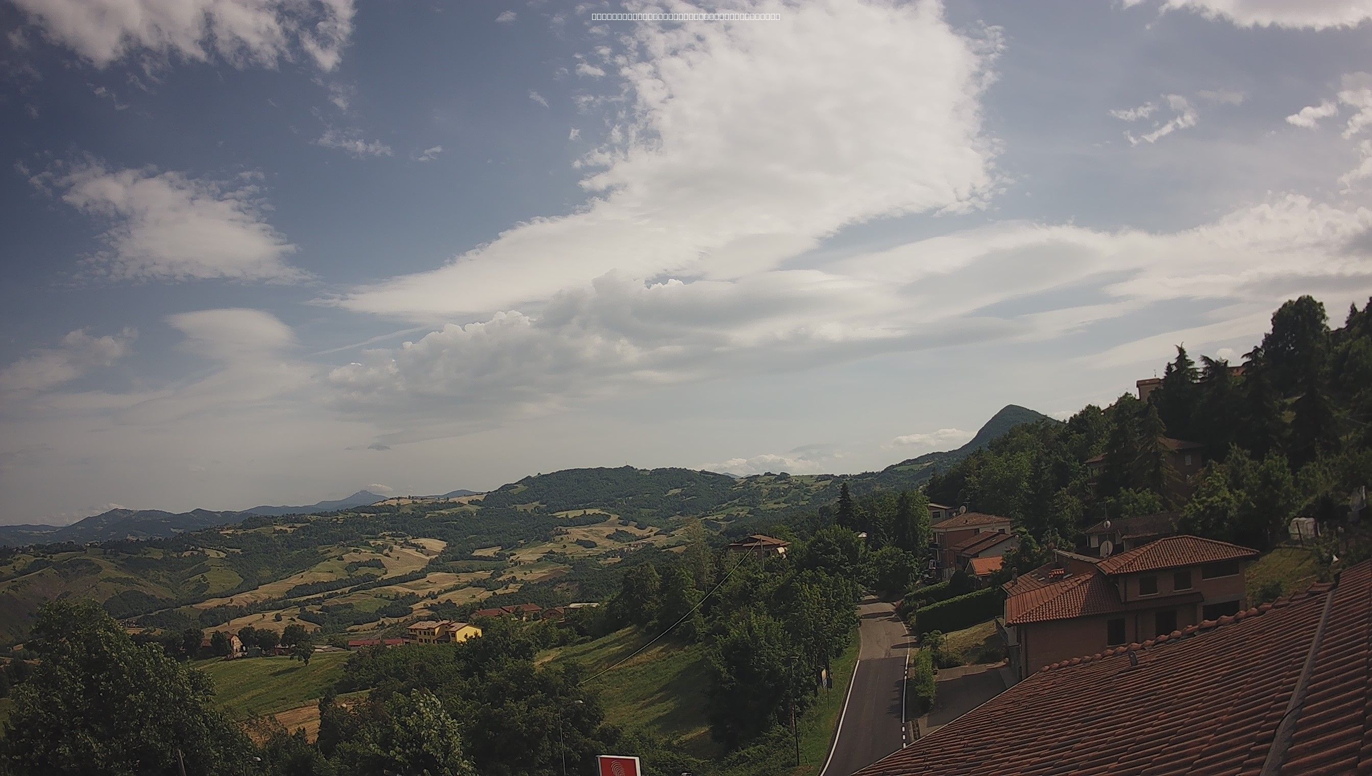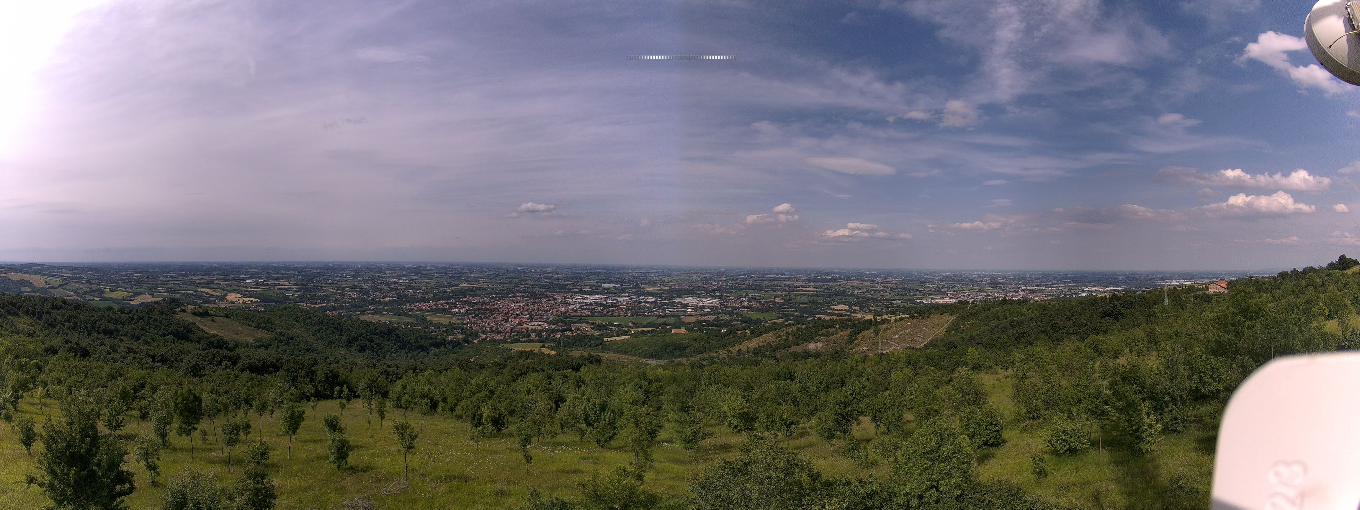 Sole a mezzo regime per via delle velature d'alta quota che interessano il cielo reggiano oggi. Velature che vedono anche la presenza di nuvole lenticolari molto alte che testimoniano la presenza di un forte vento in quota che soffia a regime di brezza moderata anche a livello del suolo tenendo mossa un po' l'aria.