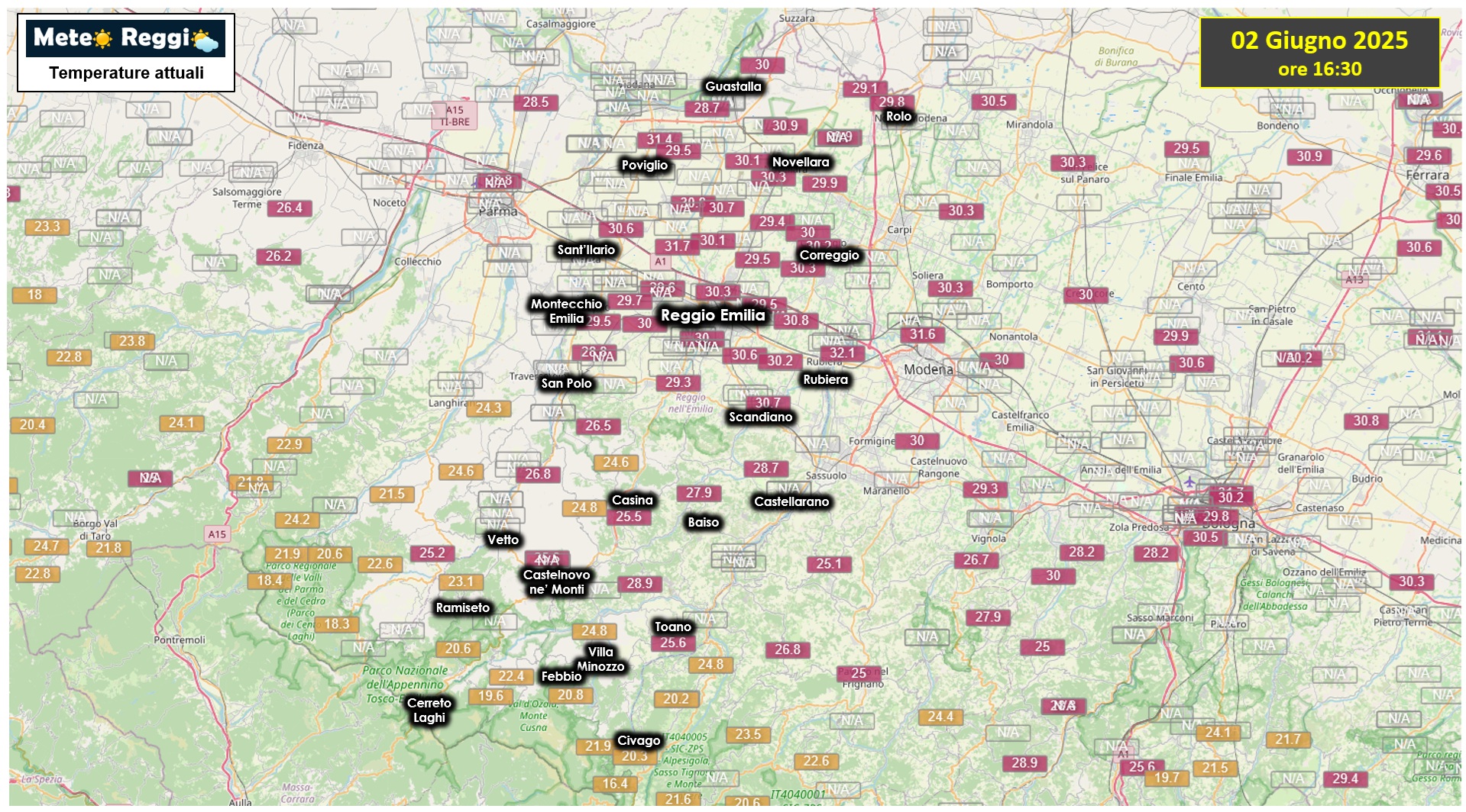 29,9°C a Fabbrico