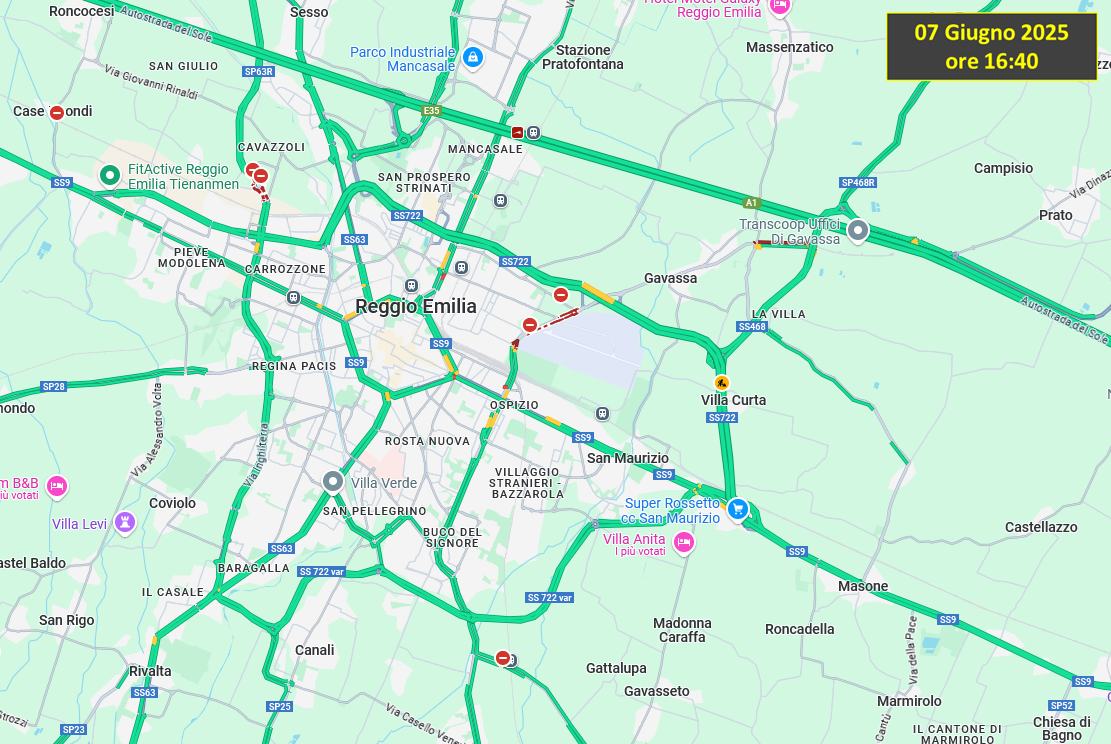 Il traffico è ancora generalmente scorrevole, ma iniziano a formarsi alcuni rallentamenti nelle vie di accesso al Campovolo.