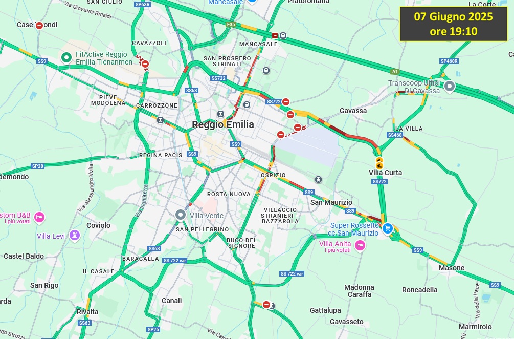 🔹 Via Emilia Ospizio: traffico sostenuto e a tratti rallentato.