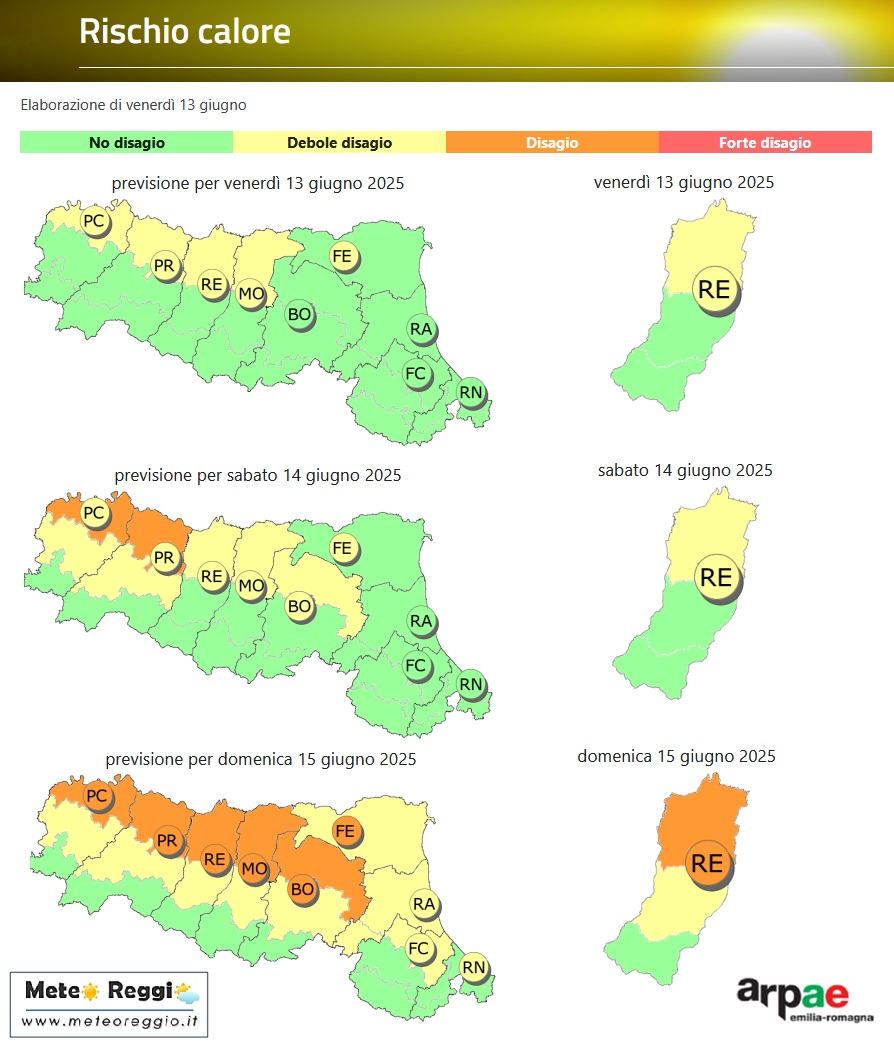 Bollettino Rischio Calore per le giornate da Venerdì 13 a Domenica 15 giugno 2025