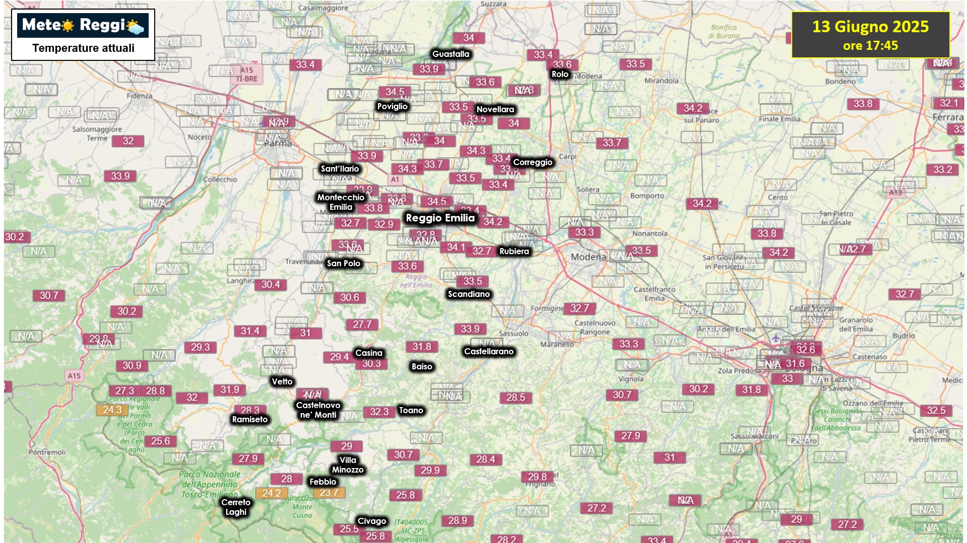 Per ora sappiamo solo che i termometri reggiani hanno registrato queste massime: