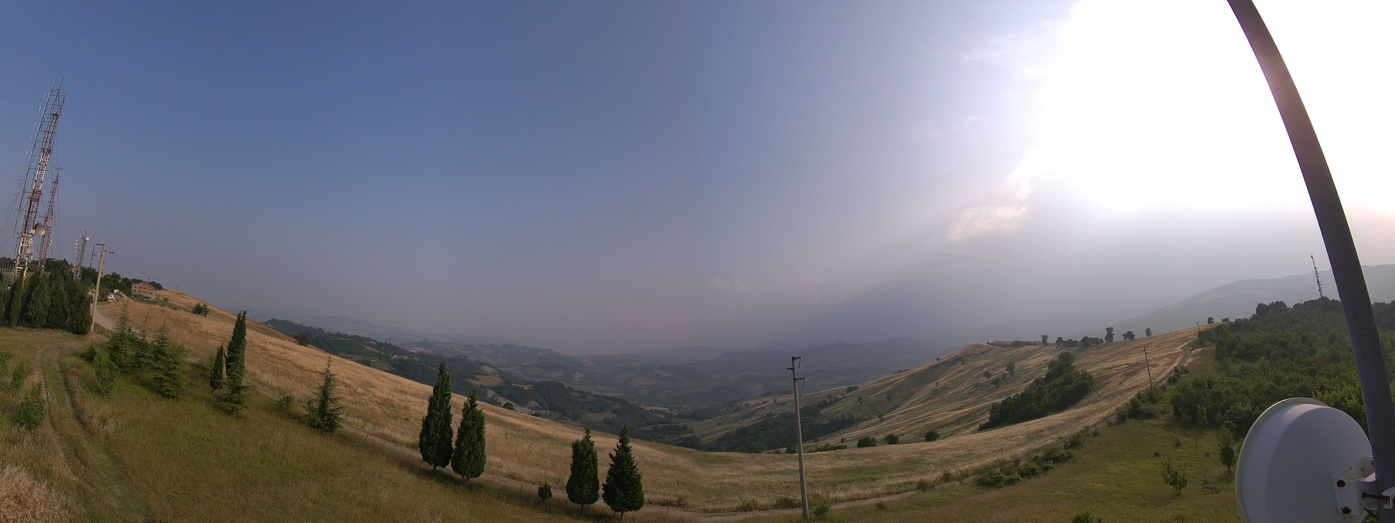 Quatto quatto, lemme lemme ... tra le foschie diffuse di polveri del Sahara miste fumi del Canada ... là, dove nessuno lo sospetta ... un Cumulonembo cresce e si muove lentamente verso est.