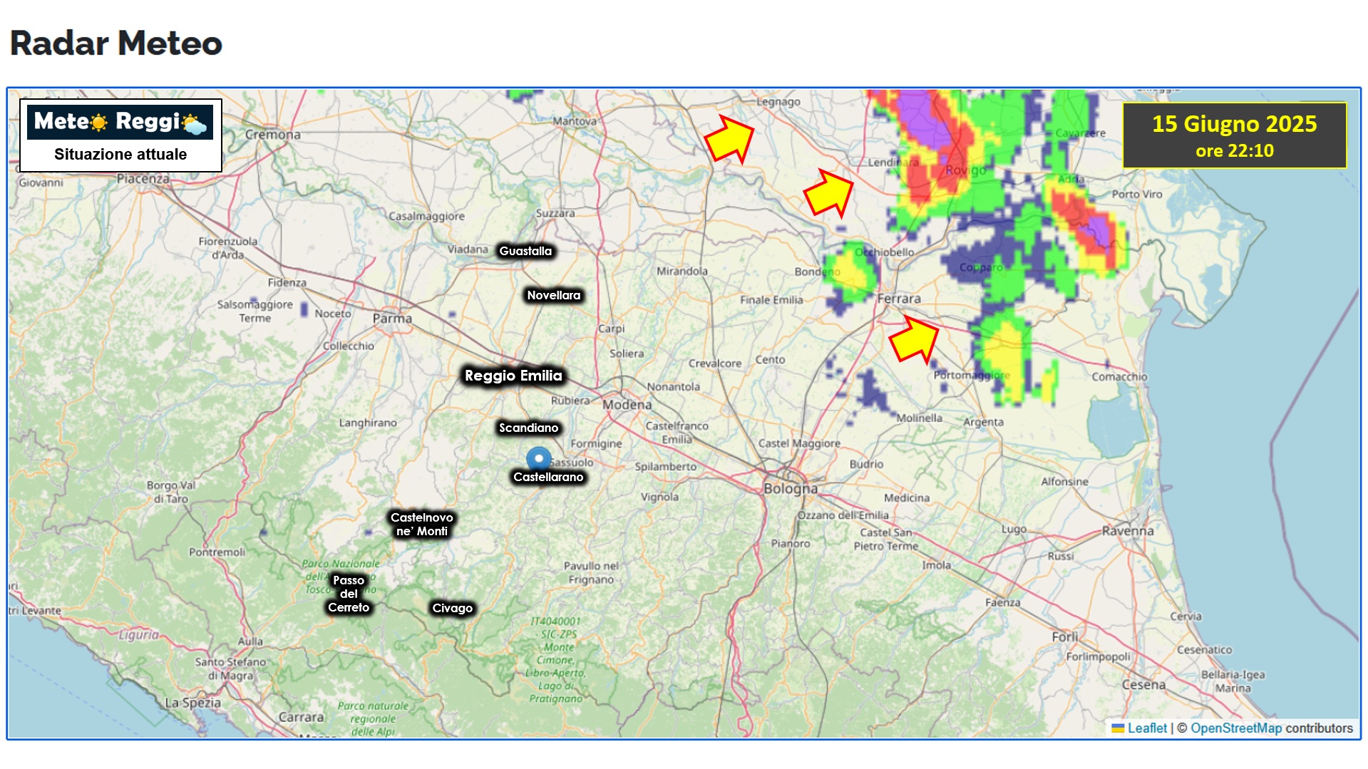 Un grosso blocco temporalesco ha preso forma poco oltre il nostro confine nella bassa modenese per poi sfogarsi in direzione del ferrarese e del delta del Po che verrrà raggiunto a breve.