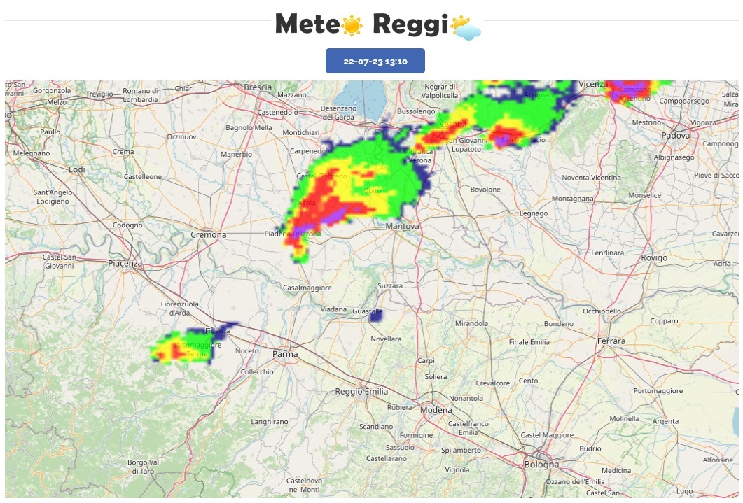 Sempre in queste zone vicine al Po, poi, abbiamo avuto qualche isolato e breve piovasco sparso arrivato e sfumato velocemente dal parmense.