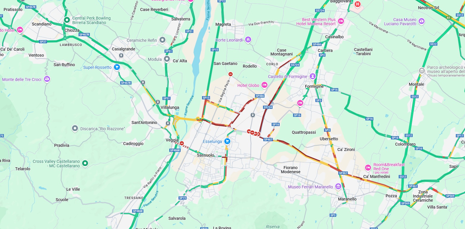 Ed è Sassuolo la zona più duramente colpita dagli allagamenti, diverse vie nevralgiche sono paralizzate da decine di centimetri di acqua.