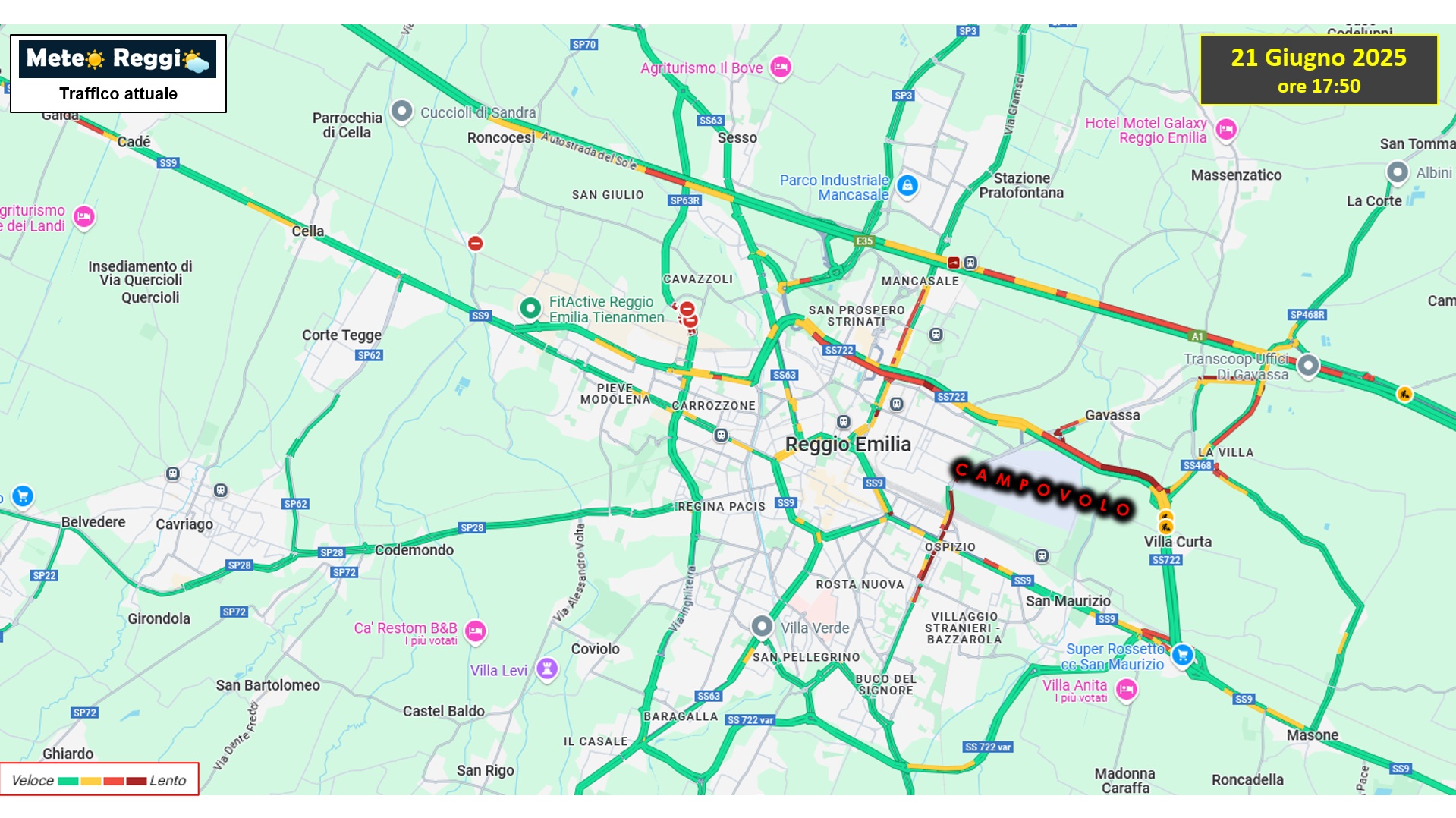 > ???? Criticità diffuse su tutta la viabilità ordinaria a nord della Via Emilia, con rallentamenti consistenti.