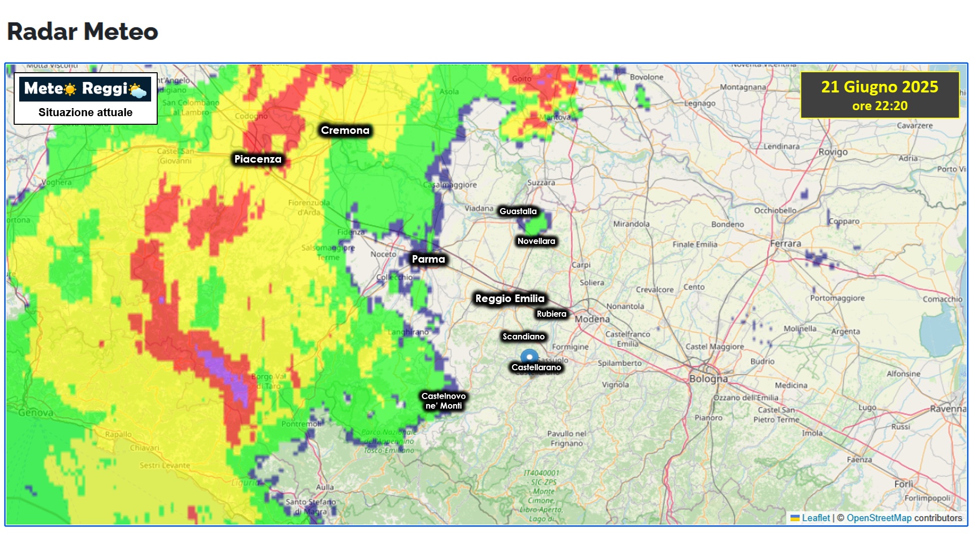 Le piogge, però, hanno già iniziato a bagnare il reggiano. A Novellara si è formata una cella di pioggia debole isolata, mentre qualcosa di più esteso in Appennino ha conquistato il territorio tra Vetto, Castelnovo ne' Monti e Ramiseto. Prime gocce anche sulla pedecollinare matildica.