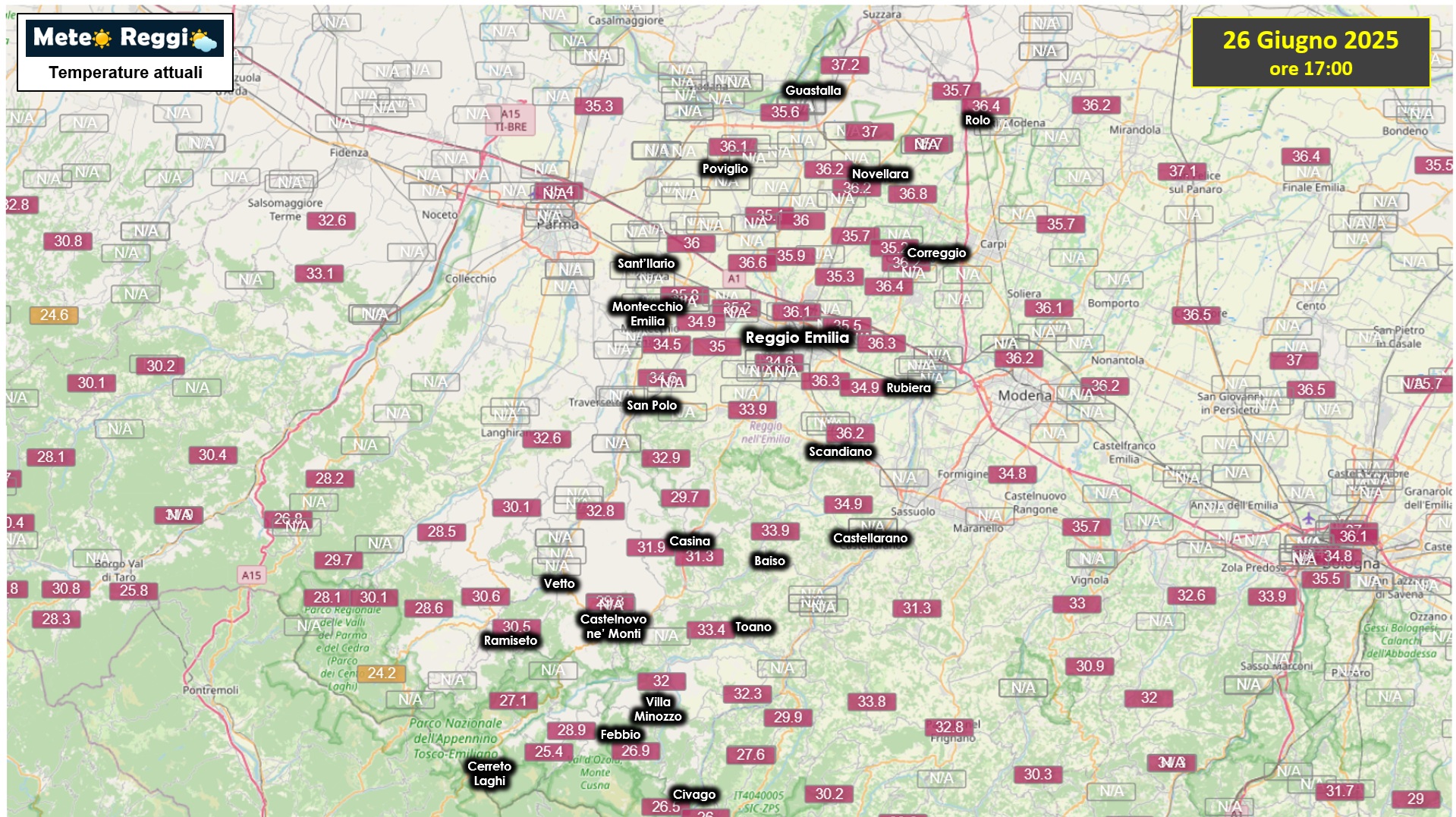 Tutto abbastanza tranquillo sul reggiano se vogliamo escludere da questo discorso le altissime temperature che in Pianura hanno raggiunto i 37°C e sfiorati di un nulla in Città a Reggio Emilia.