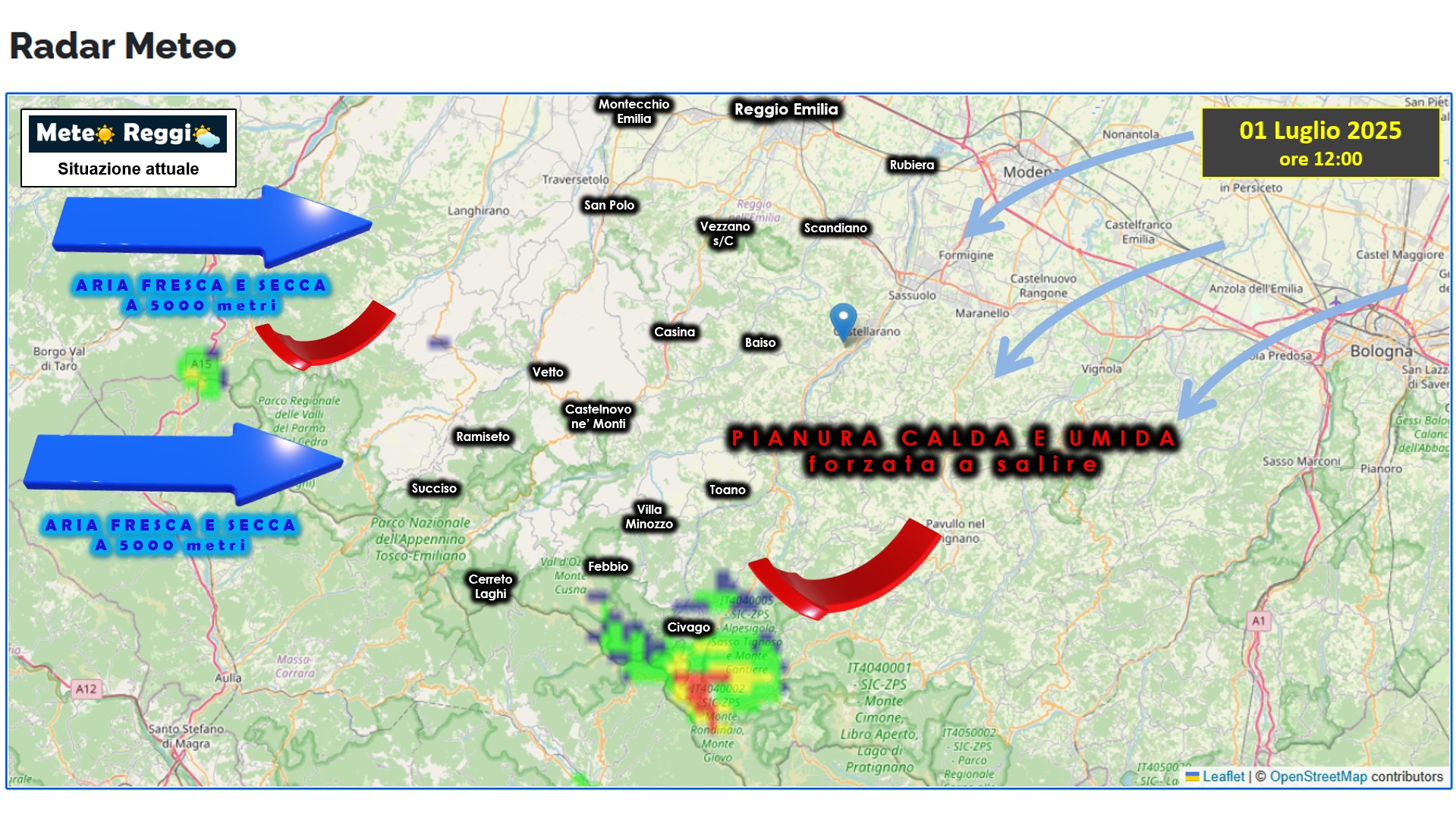 Inizia, quindi, l'instabilità montana attesa dall'ora di pranzo fino a metà pomeriggio. Una linea di temporali intermittente che vede già una piccola seconda cella in formazione nel parmense.