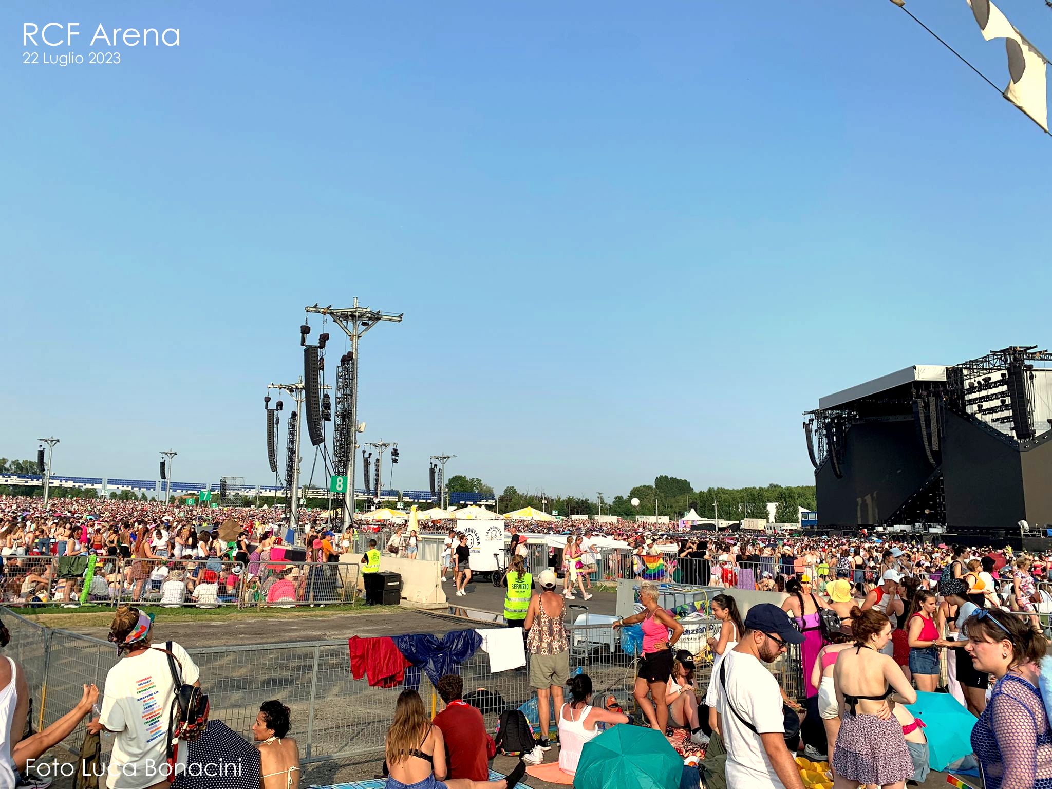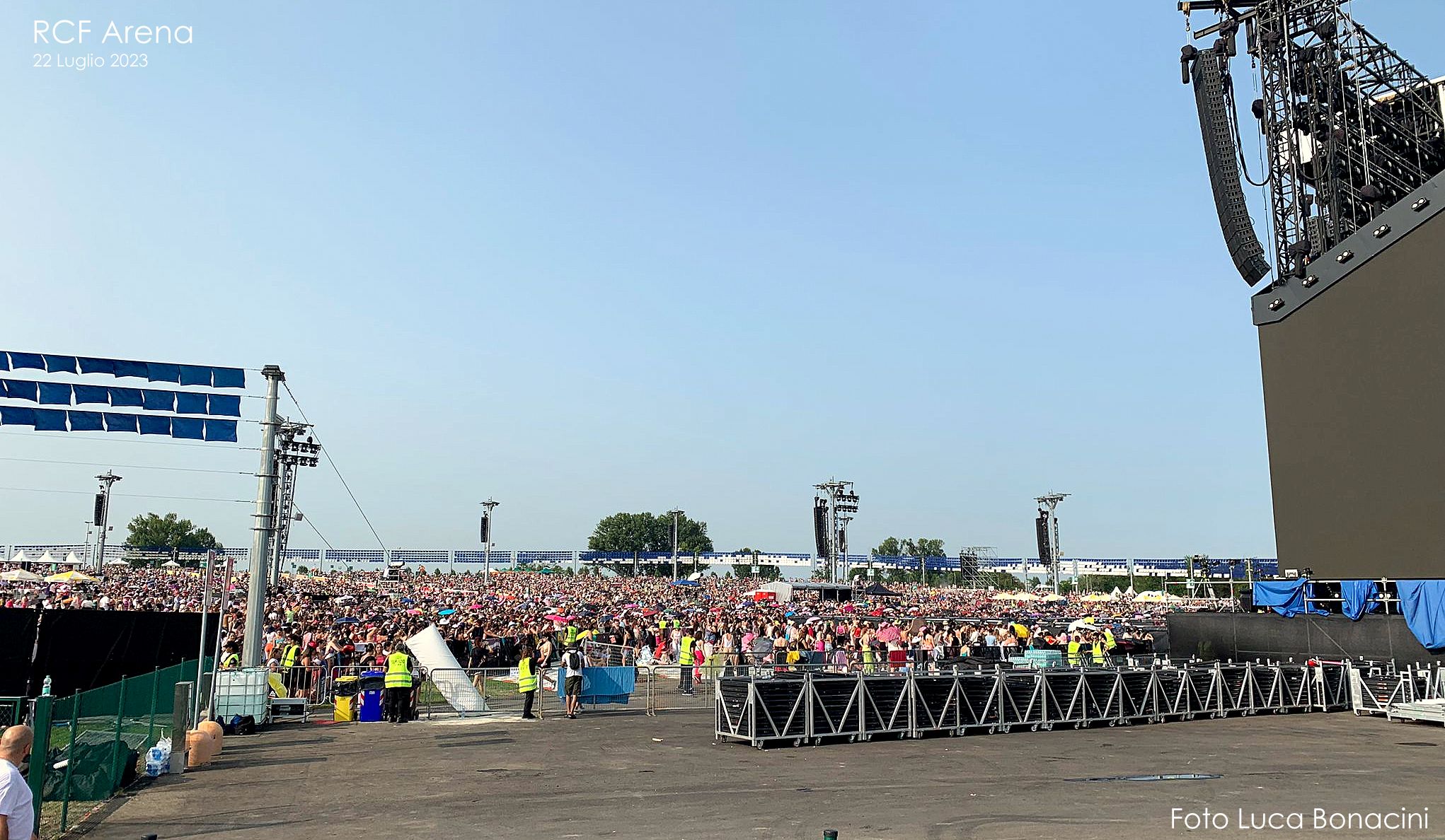 Dopo il nubifragio di inizio pomeriggio la situazione è migliorata all'RCF Arena dove questa sera si terrà la tappa conclusiva del tour mondiale "Love on Tour" di Harry Styles. Il pubblico che staziona davanti ai cancelli già da diversi giorni sta confluendo dentro l'arena per il grande concerto che inizierà alle 19:30 con l'esibizione delle "Wet Leg". Alle 20:45 sarà la volta della pop-star che si esibirà per quasi due ore.