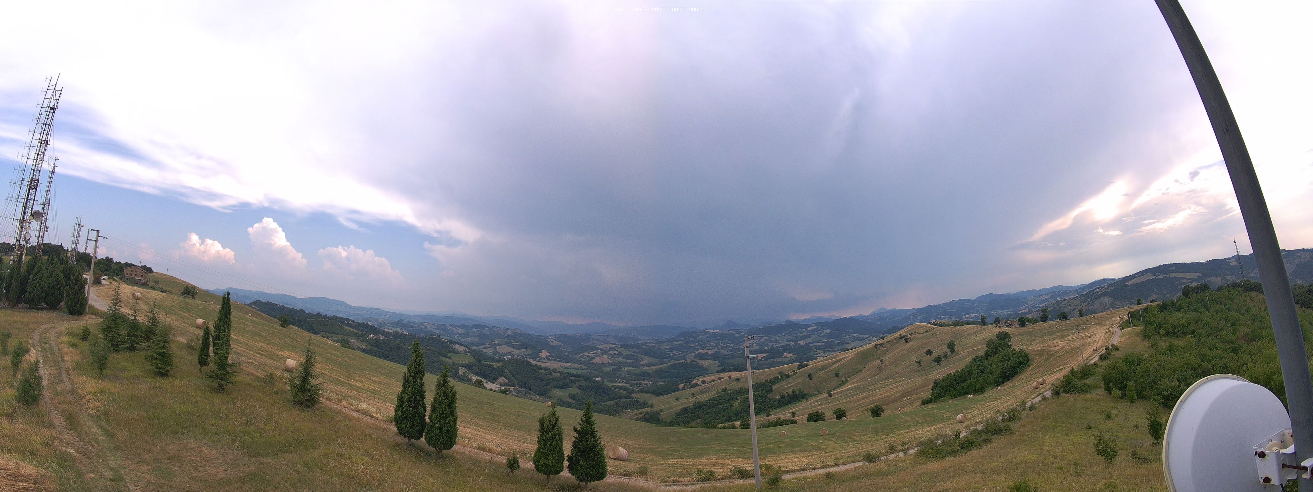 Temperature che in Pianura si sgonfiano fino alla Via Emilia dove arriva l'ombra del grande Cumulonembo con la sua incudine. Valori però molto alti con 34°C a Reggio Emilia e 36°C nella Bassa dove ancora splende il Sole ed il cielo è sereno.