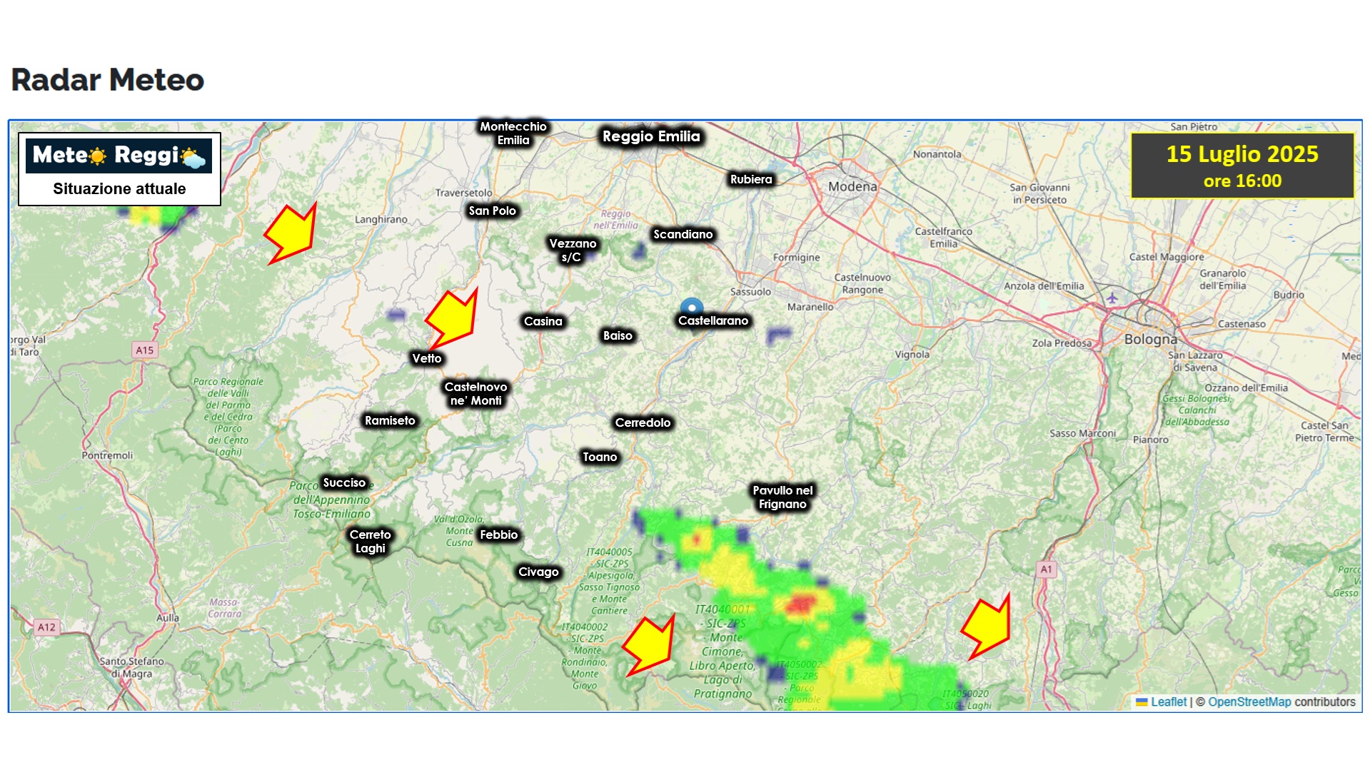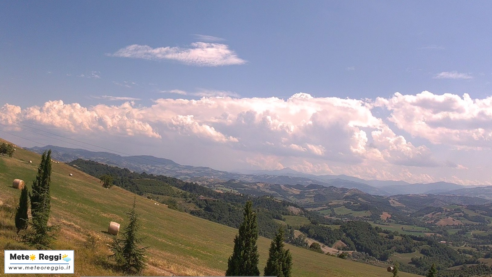 Si sono sviluppate in queste ore diverse nuvole torreggianti sull'Appennino, ma è più che altro il "bernoccolo" del monte Cimone a favorire la risalita forzata del caldo in arrivo dalla Pianura e spinto dal vento. Pertanto abbiamo dei temporali nell'alto Appennino modenese alla destra del Dolo e non nel nostro territorio.