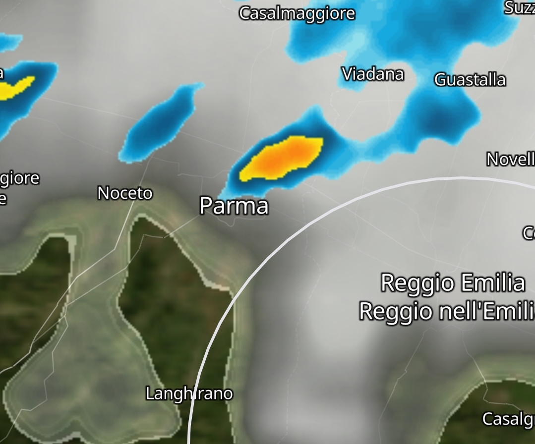 Deboli piogge sono presenti nella Bassa reggiana, specie tra Guastalla e Brescello.