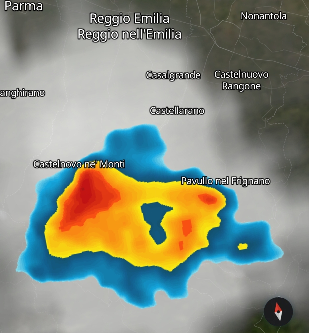 Cielo minaccioso anche oggi verso sud. Temporali interessano la fascia montana a sud di Castelnovo ne' Monti.
