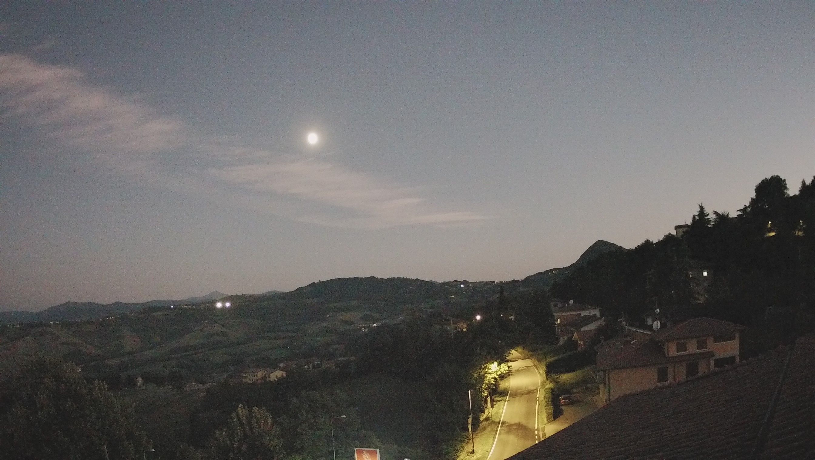 Cala la sera e splende una meravigliosa Luna nel nostro cielo. Giornata "sonnacchiosa" segnata dalla presenza di qualche velatura ma comunque i termometri si sono spinti oltre i 30°C in diverse località della Pianura fin poco sotto la Via Emilia.