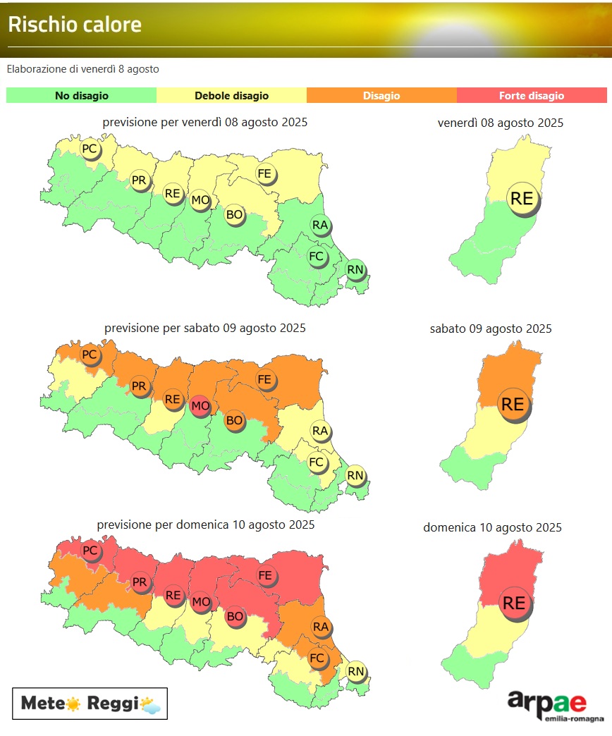 🌡️ Bollettino rischio calore Periodo: 8-10 agosto 2025 🌡️