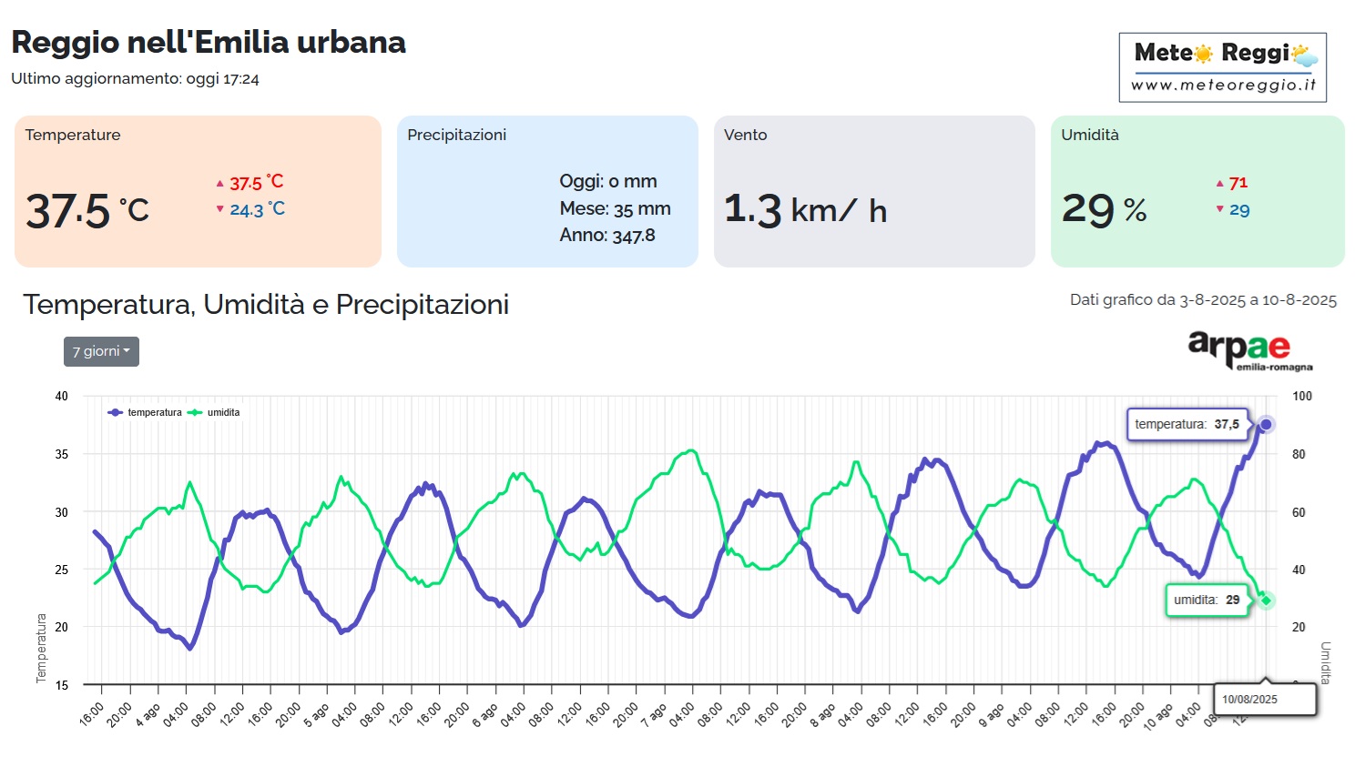 37,5°C a Reggio nell'Emilia urbana