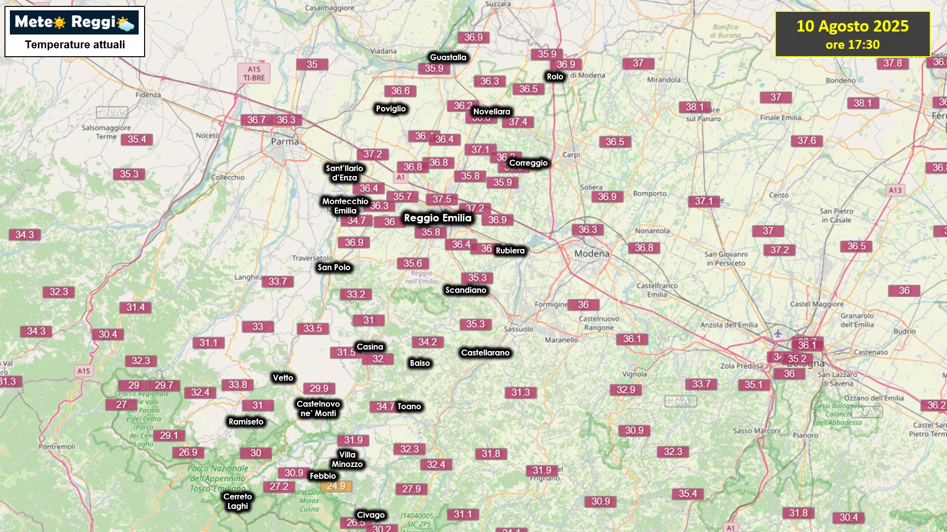 37,3°C a Sant'Ilario d'Enza