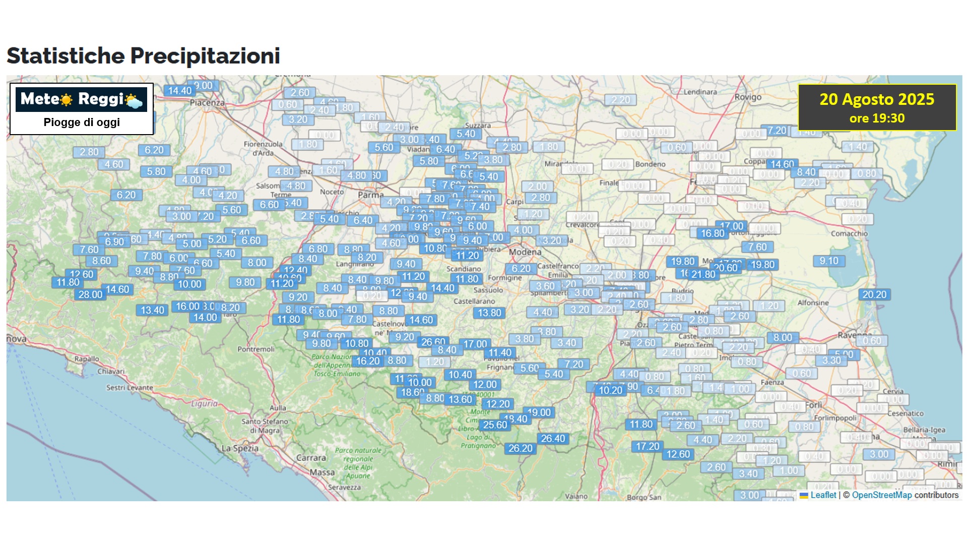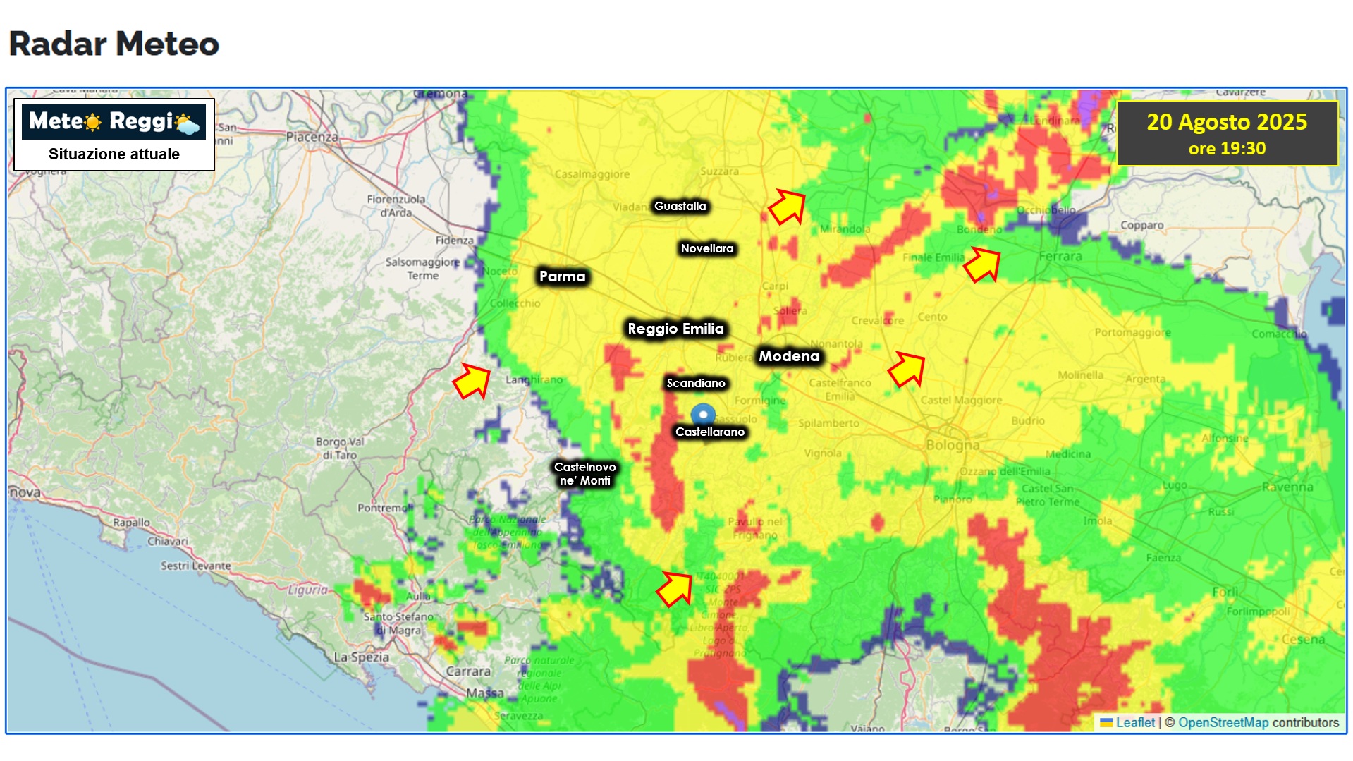 Ancora piogge copiose su tutto il reggiano, con attività temporalesca presente anche sulle zone di Pianura. Il quadro generale, però, è meno nefasto di quanto vedessero alcuni modelli. La perturbazione è più spostata ad est e le zone dell'alta valle dell'Enza vedono già il ritorno del Sole.
