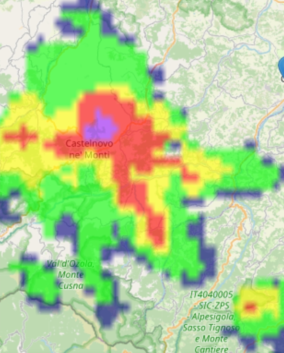 Un nucleo temporalesco è attivo poco a nord di Castelnovo ne' Monti.