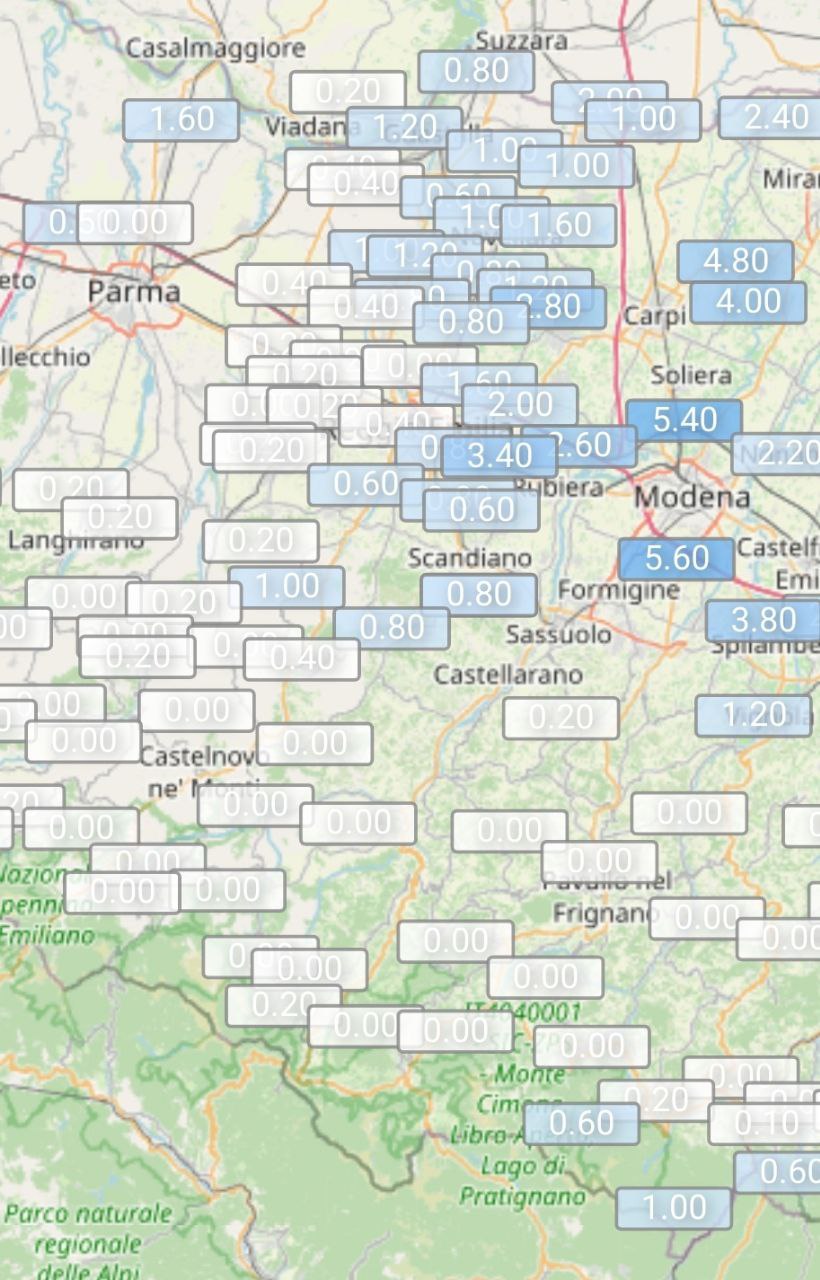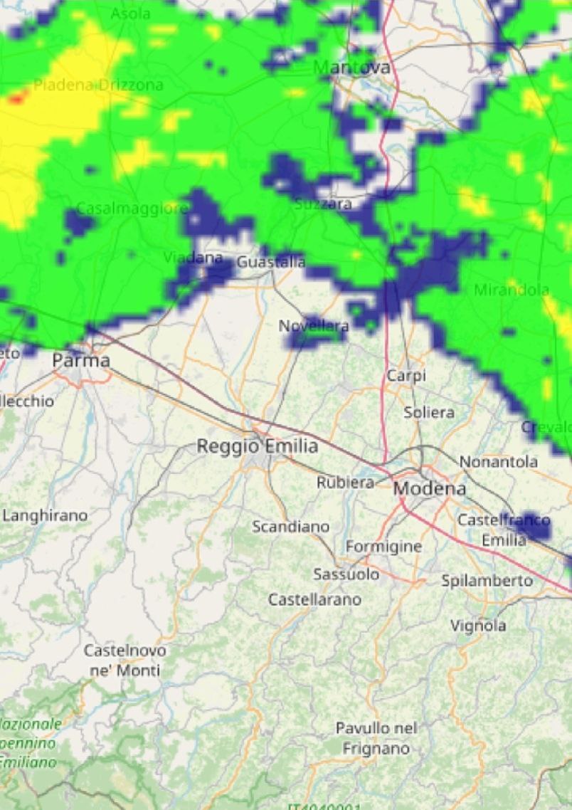 Il sistema piovoso che ha interessato tutta la Pianura e parte della Pedecollinare sta ancora interessando le zone della Bassa, ma in fase di allontanamento verso il modenese.