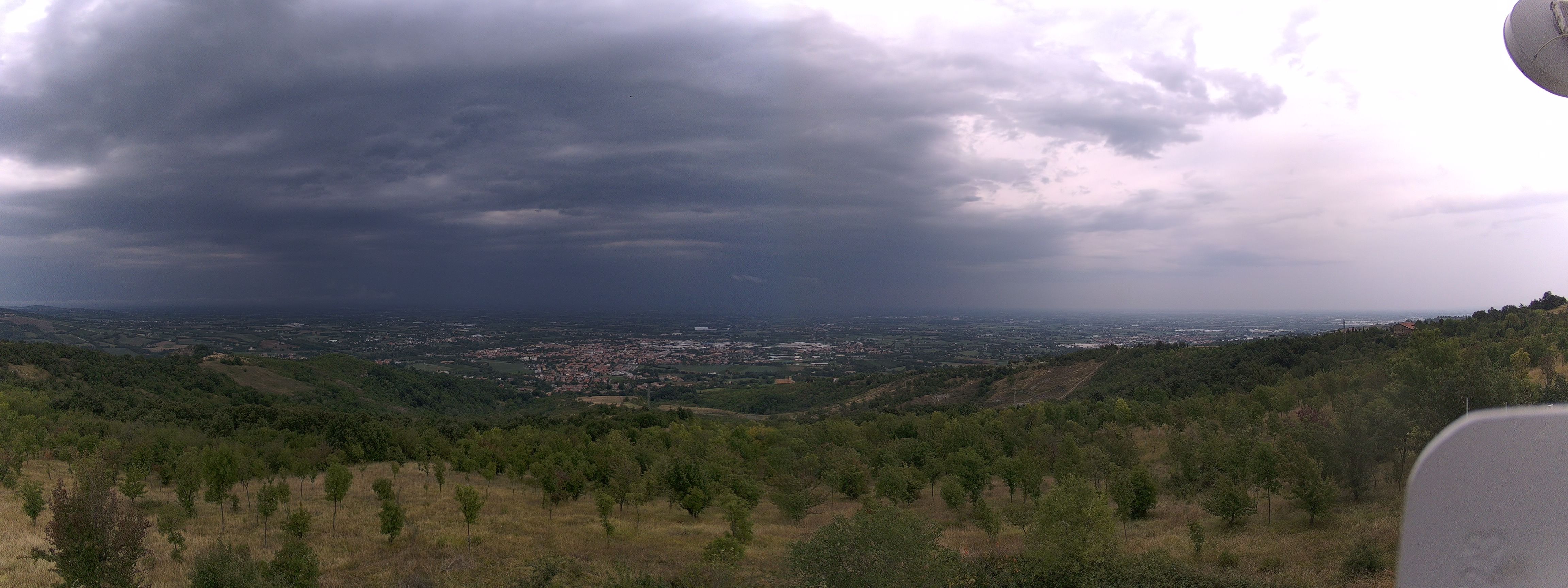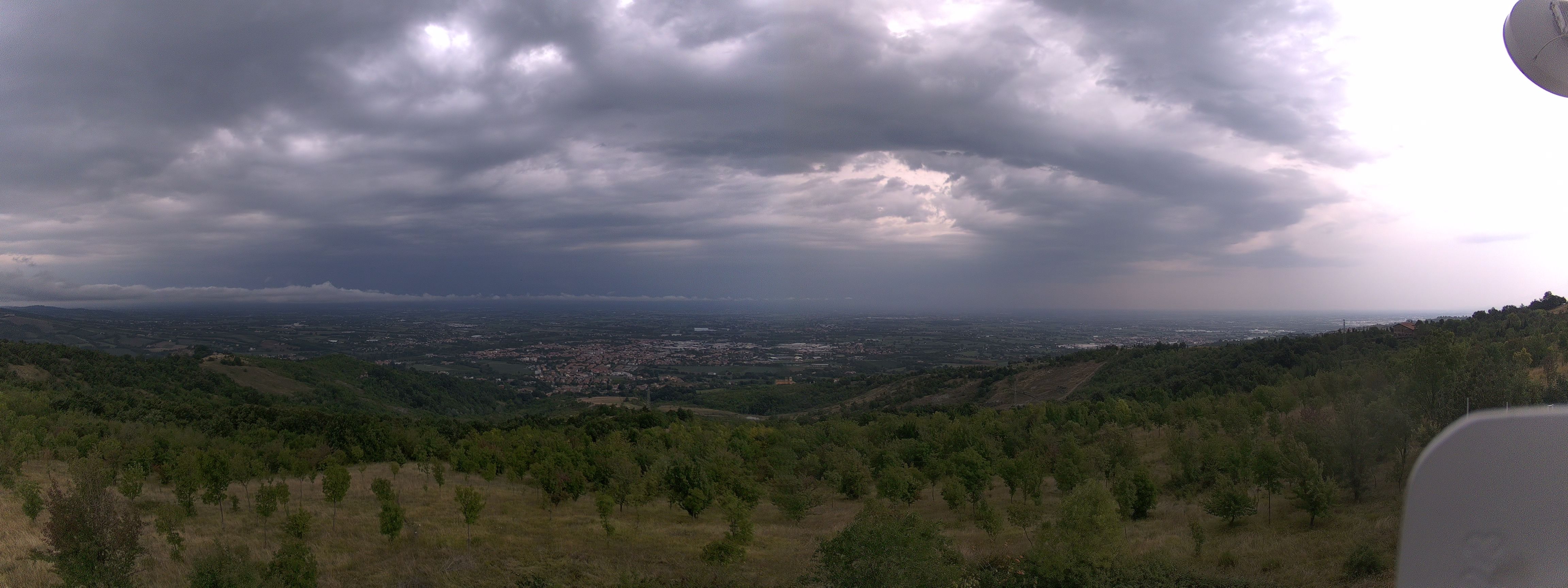 Cielo minaccioso ad ovest, cielo vistosamente segnato da una lunga linea grigia di piogge che si allunga dalla Valle del Taro fino al Po lungo tutta la provincia di Parma. Tuttavia questa linea sconfina nella zona reggiana rivierasca del Po con piogge e forti raffiche di vento. Raffiche che però si stanno estendendo in questi minuti anche alle altre zone fino al comprensorio ceramico.