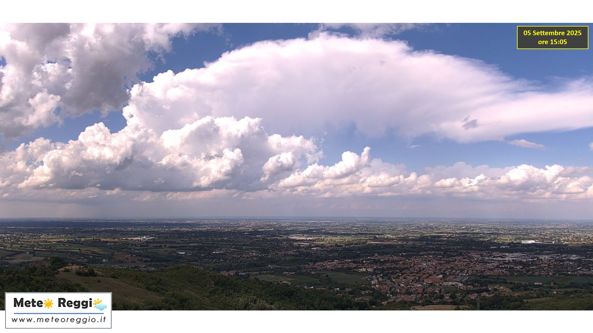 Ed è proprio questa formazione che svetta per altezza e per forma se rivolgiamo lo sguardo verso nord-ovest. Un comignolo di vapore che sale fino ad inclinarsi verso la bassa reggiana spinto dalle correnti dominanti in quota. Ad alimentare il tutto ci sono temperature al suolo di 30°C che favoriscono l'ascesa del vapore acqueo.