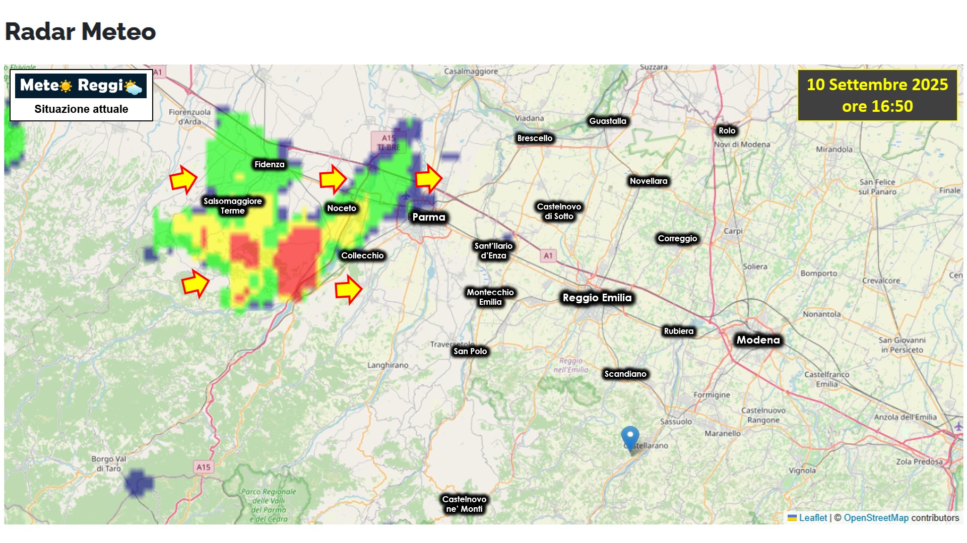 Nella prossima ora questo sistema si avvicinerà all'Enza per valicarlo, possibili piogge a Reggio Emilia per poi virare successivamente verso l'indebolimento progressivo.