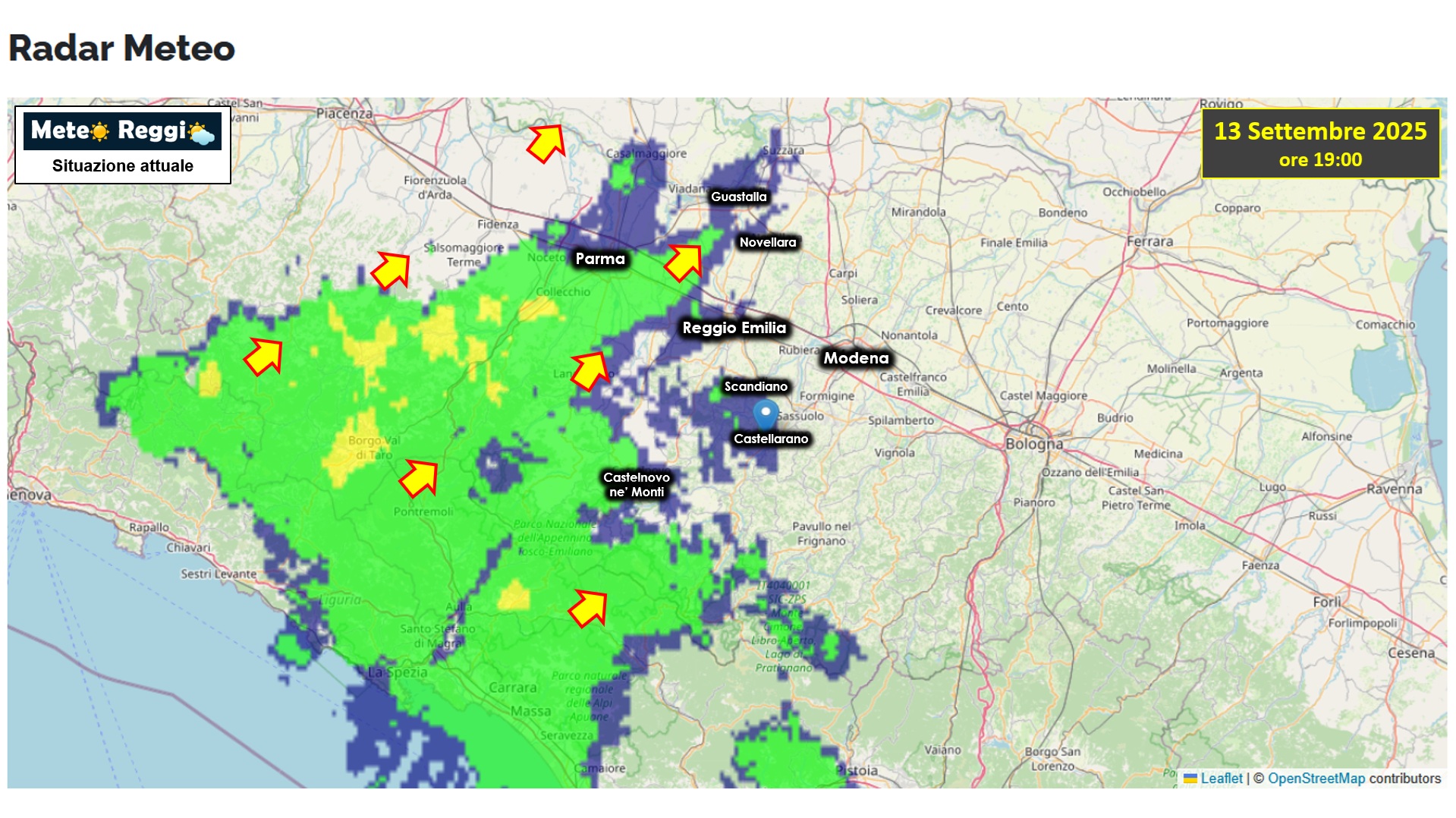 Ancora una volta la parte dell'Appennino più permeabile è quella occidentale, ma non sono previsti acuti intensi nelle prossime ore. Una linea più movimentata di temporali ha preso forma al largo di Genova, sarà quella da monitorare meglio quando il buio farà il suo arrivo, ma come detto anche in fase previsionale non ci aspettiamo eventi importanti sul reggiano.