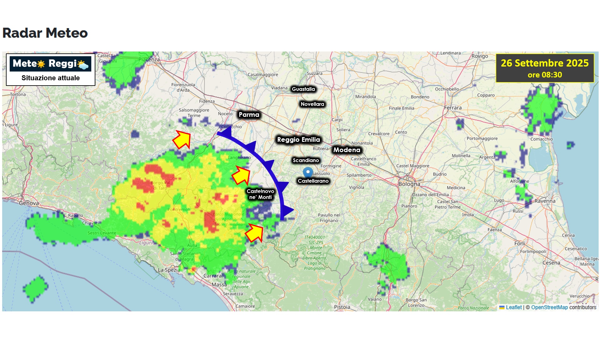 Tinte uggiose su tutto il reggiano con una punta piuttosto spessa di pioggia che sta scendendo dall'Appennino verso la Pedecollinare. Un fronte compatto che porta già le prime pioviggini contro la Via Emilia tra Reggio e Parma, mentre nel comprensorio ceramico farà il suo arrivo in questi minuti.