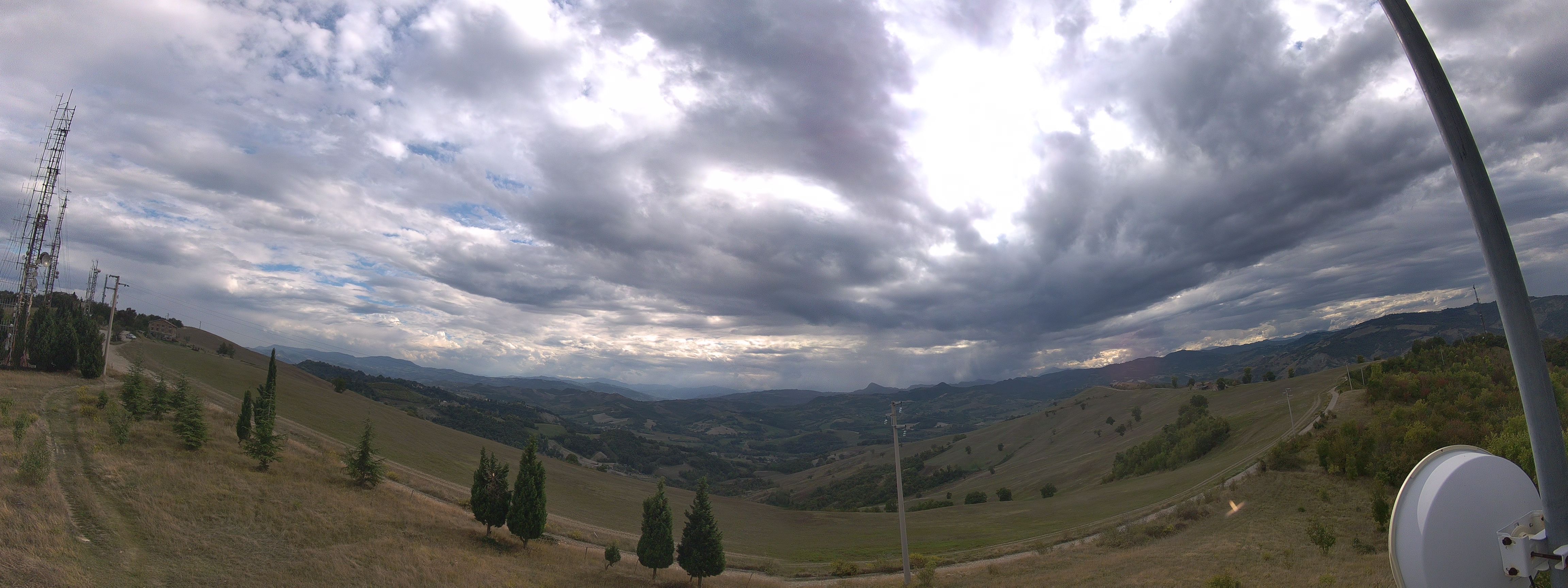 Cielo ancora minaccioso, altre piogge sono presenti sul Crinale e minacciano di scendere più a valle. Questo è un po' il trend di tutta la giornata che comunque ha saputo regalare anche qualche sprazzo di Sole all'ora di pranzo.