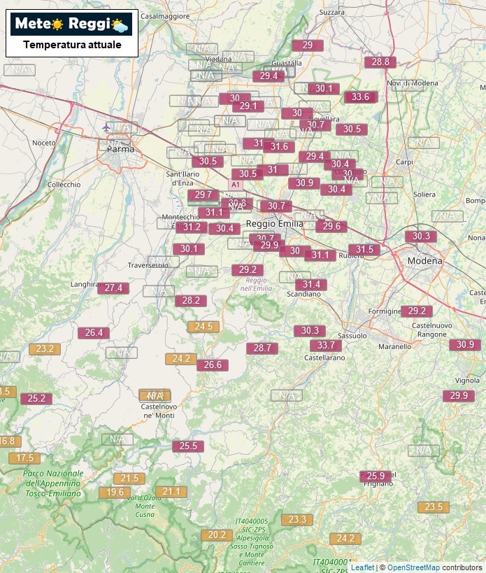 Il Garbino si sta comportando da vento di caduta valicando il Crinale con temperature di circa 19°C (qualcosa di meno in quota), per raggiungere la Pedecollinare con 31°C, praticamente riscaldandosi di 1°C ogni 100 metri di caduta.