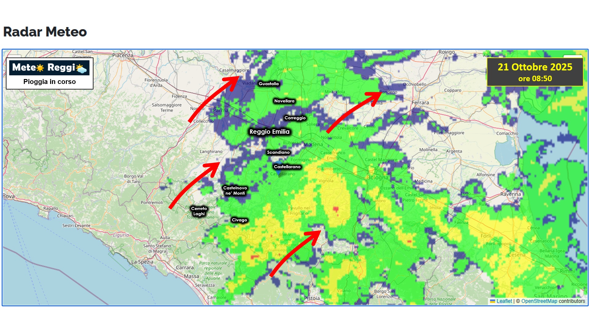 La pioggia è finalmente tornata a bagnare il reggiano in modo abbastanza efficacce sulle zone di montagna, mentre su diverse zone ne servirebbe un po' di più. Colpa della barriera del nostro Crinale che ha deviato il grosso delle piogge altrove, ma dalla mezzanotte anche il nostro territorio è stato attraversato dalla perturbazione. Ora tutto il sistema scivola progressivamente verso est e nelle prossime ore libererà il reggiano.