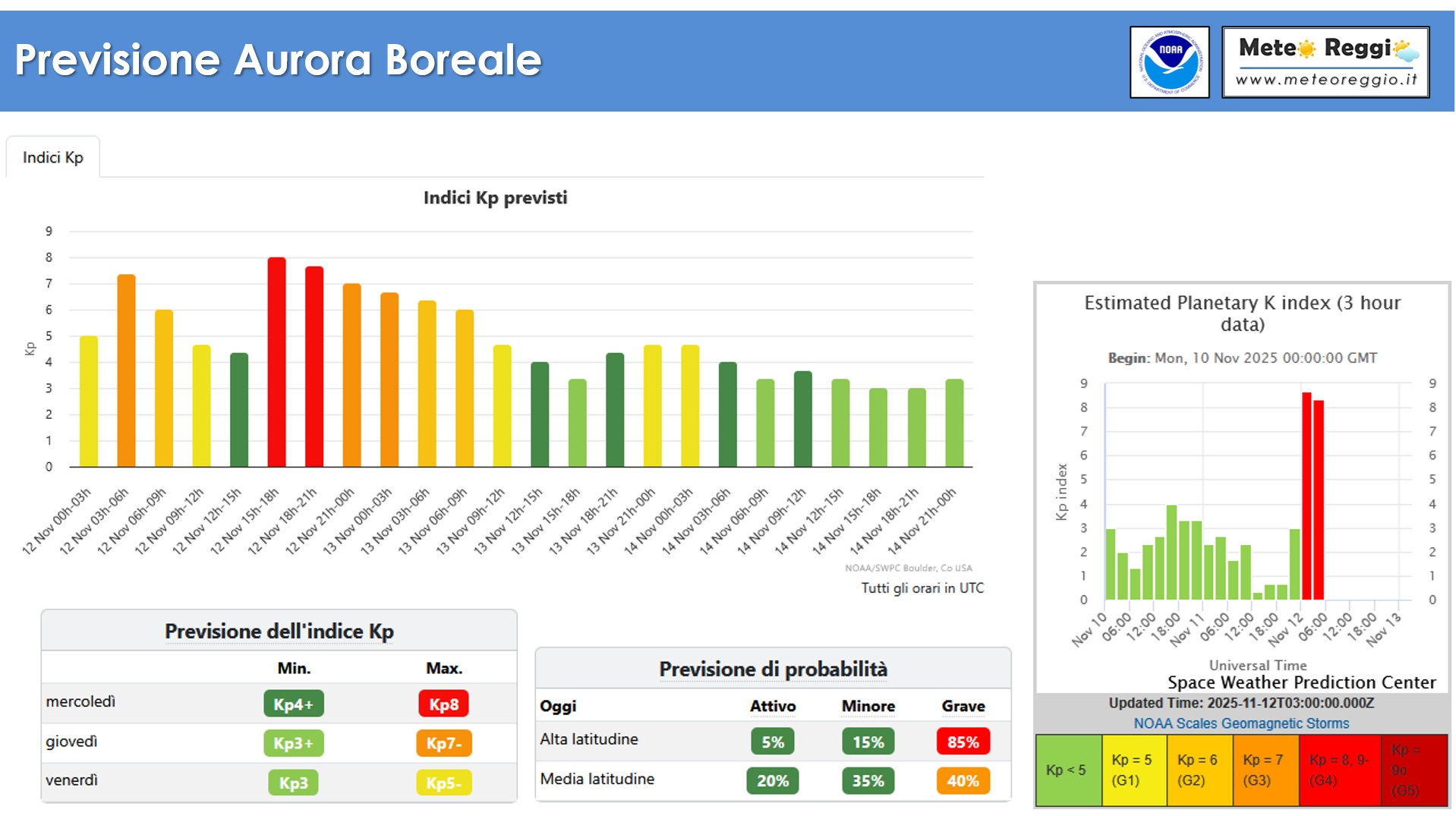 Questo significa che anche questa notte avremo buone probabilità di vedere l'aurora boreale dalla nostra latitudine. La finestra temporale può essere ristretta tra le 16:00 e le 22:00, gli esperti per quella fascia oraria si aspettano valori di tempesta geomagnetica G4 che poi calerà progressivamente.