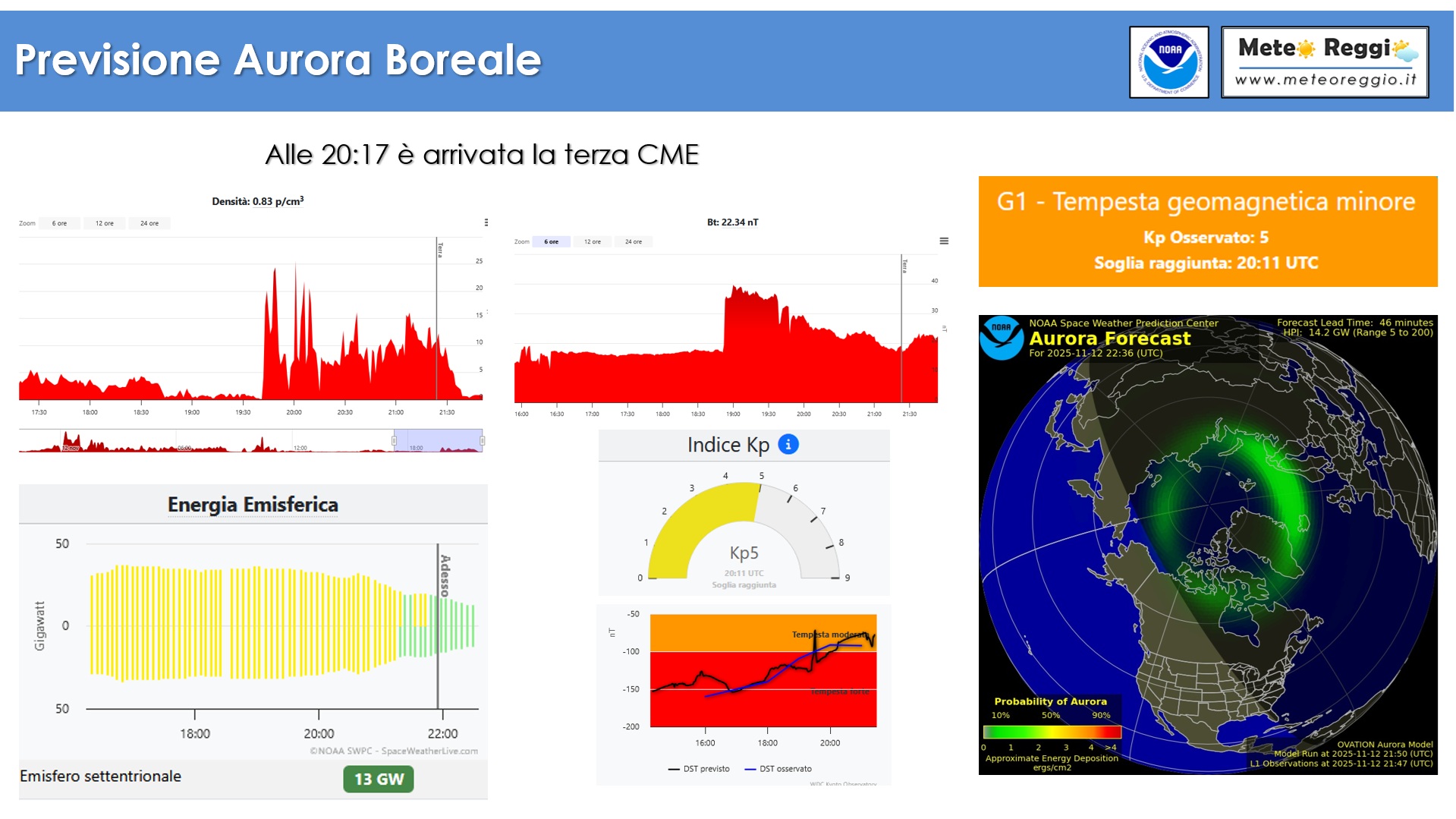 La terza CME ha raggiunto la nostra magnetosfera attorno alle 20:17 ed è stata ben registrata dagli strumenti. Tuttavia pare non manifesti la stessa arroganza delle eruzioni dei giorni scorsi che si sono manifestati questa notte con la meravigliosa aurora che abbiamo visto in tutte le salse qui sui nostri canali.
