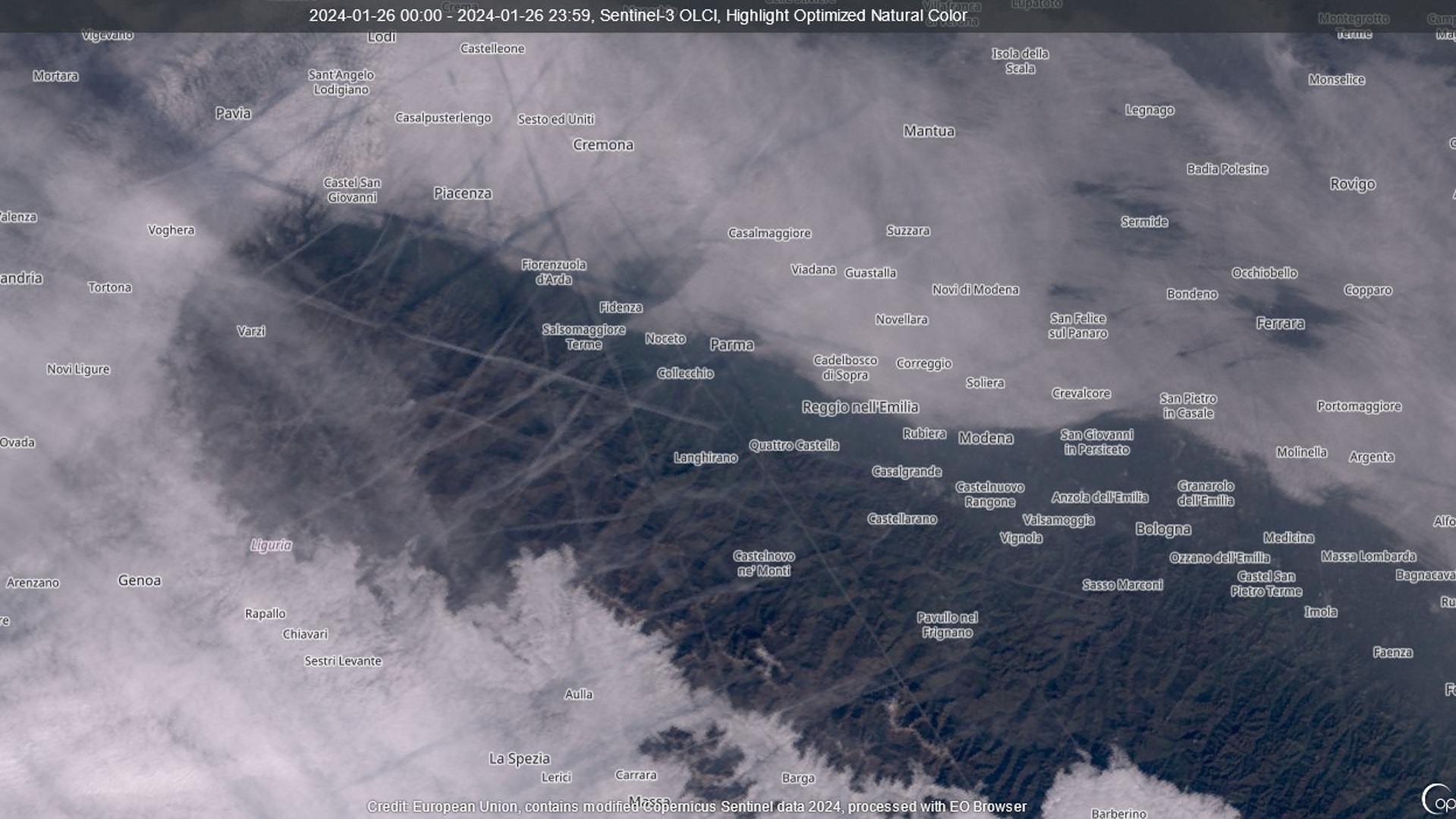 Perchè nel momento in cui è passato il satellite del sistema Copernicus (circa le 11:45 del mattino), stava facendo il suo ingresso una corrente d'aria umida dalla Francia e avanzava verso est.