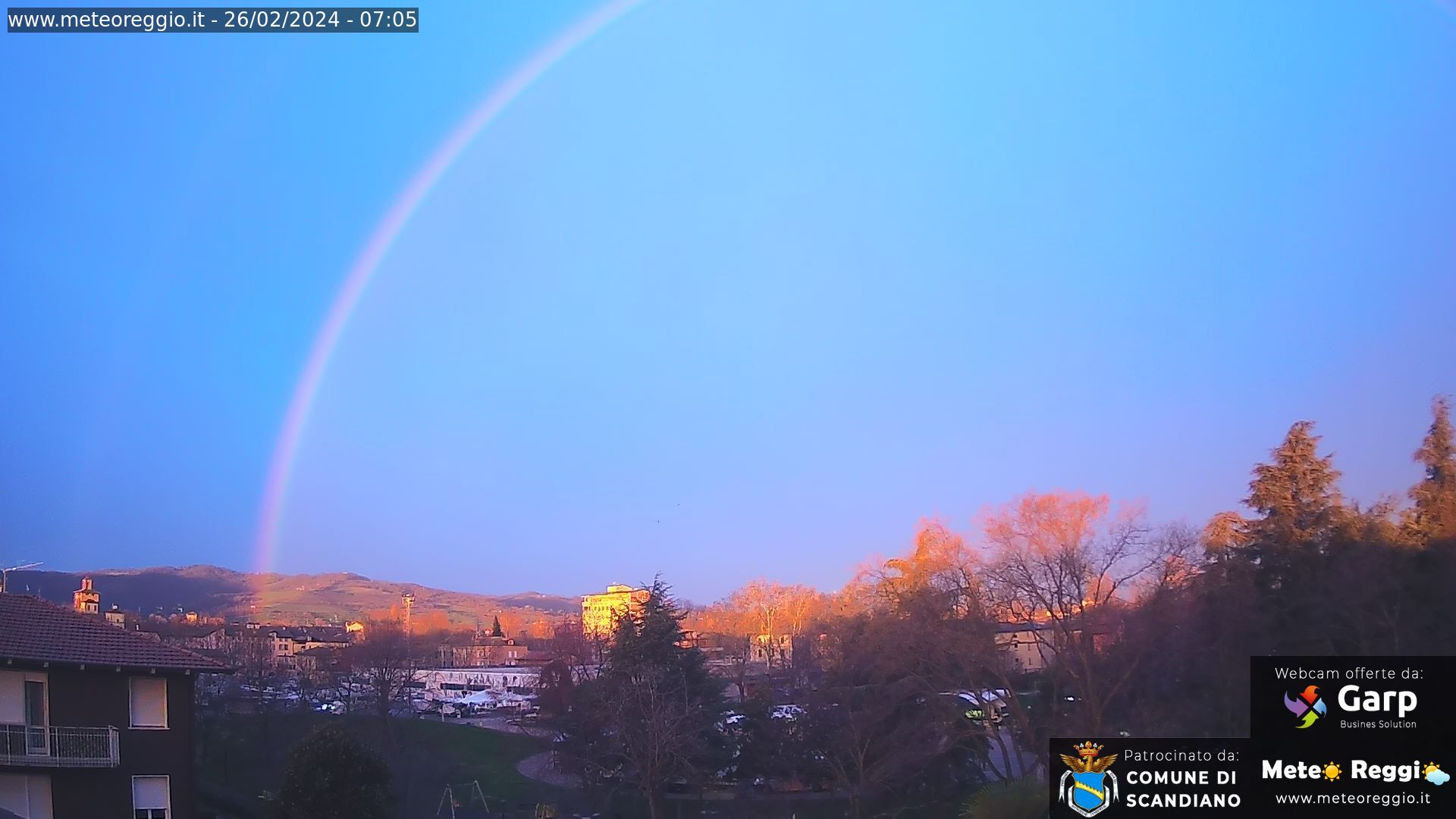 La piccola fessura di cielo libero ad est ci ha permesso di poter godere per pochi minuti di uno spettacolare arcobaleno che si è manifestato su gran parte della Provincia.