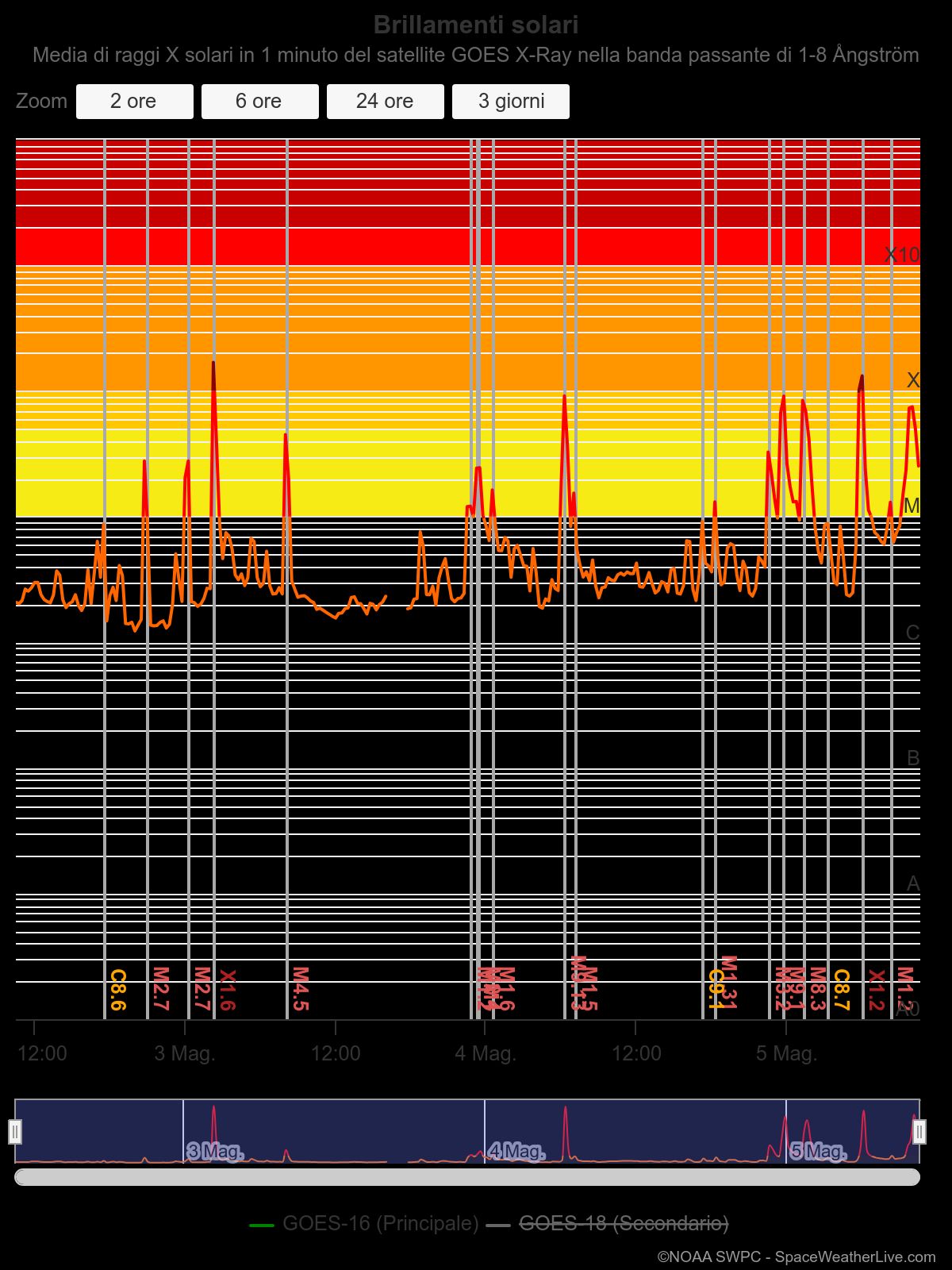 Questa mattina se ne sono verificati un paio, di cui uno di classe X 1.32 ... mentre il giorno 03 maggio uno leggermente più potente fino a classe X 1.69.