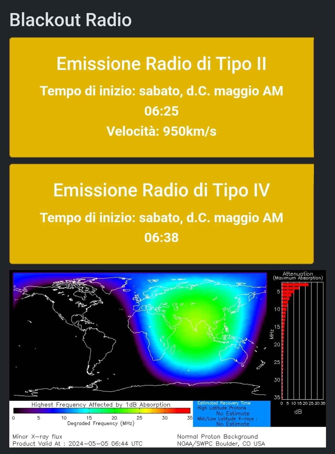 -> Blackout delle comunicazioni radio: Le intense emissioni di radiazioni solari possono interferire con le comunicazioni radio sulla Terra, causando blackout temporanei o degradazioni delle trasmissioni radio. Questo può influenzare le comunicazioni su vasta scala, inclusi i servizi di radiodiffusione, la trasmissione radioamatoriale, le comunicazioni satellitari e le comunicazioni wireless.