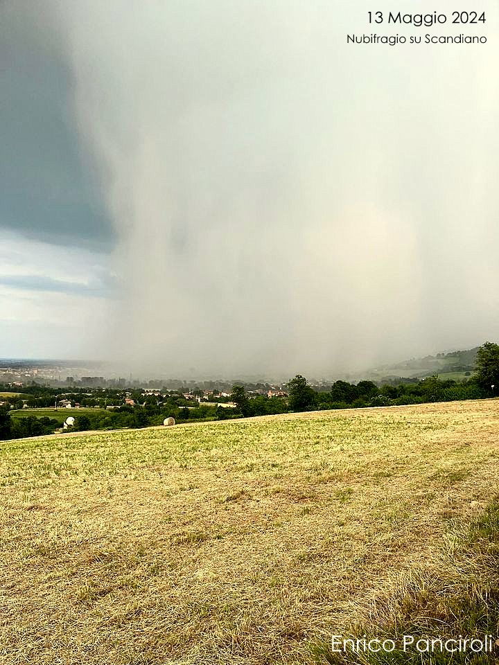 Nelle immagini di Enrico Panciroli vediamo il temporale del 13 maggio 2024 che dalla valle del Tresinaro investe Scandiano con un forte "NUBIFRAGIO".