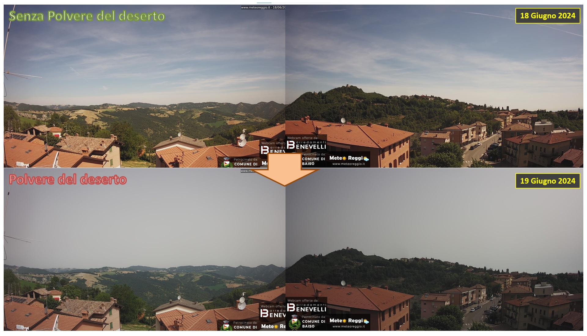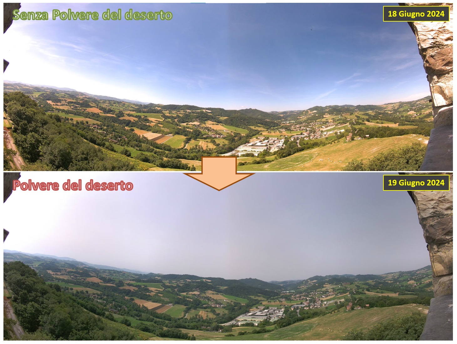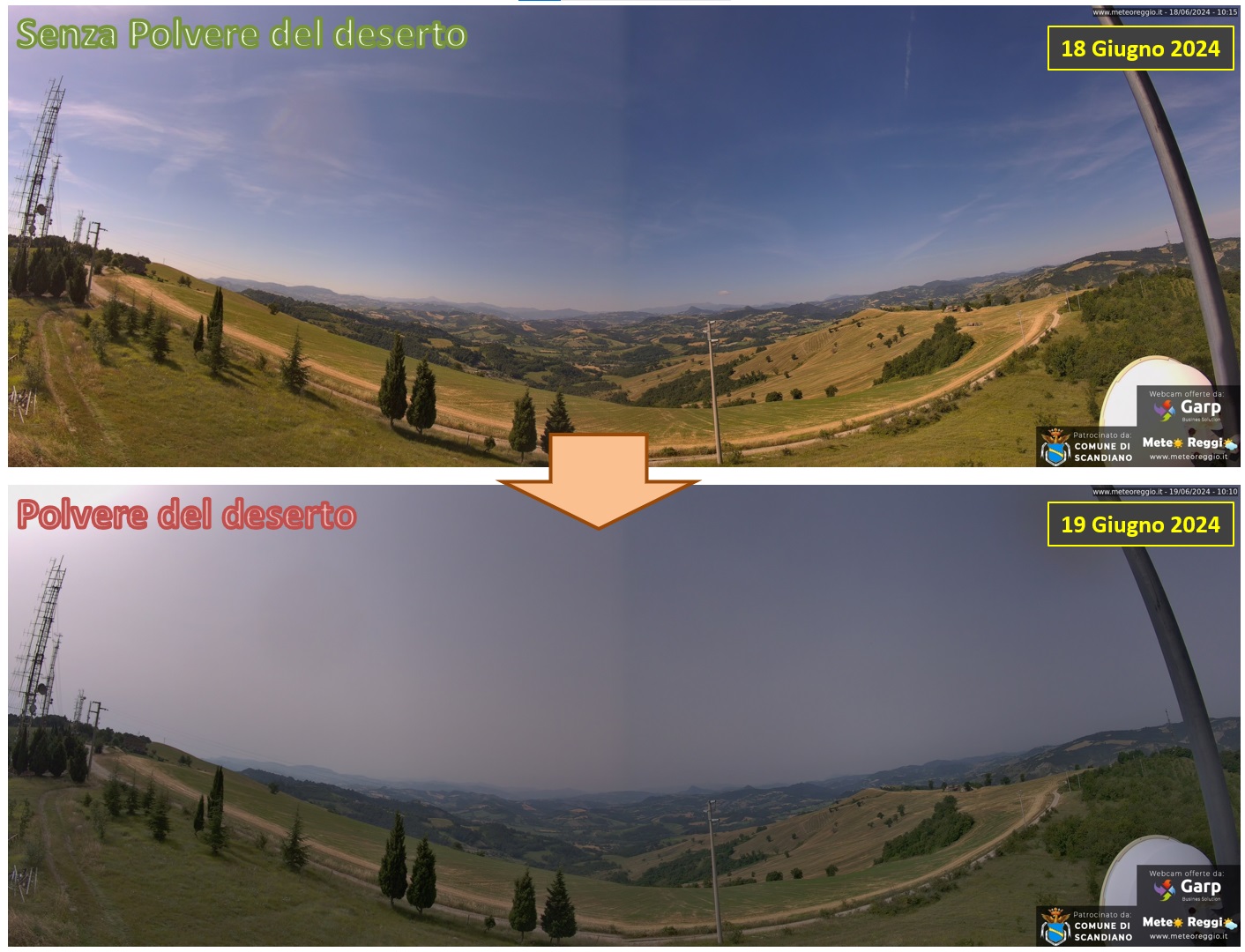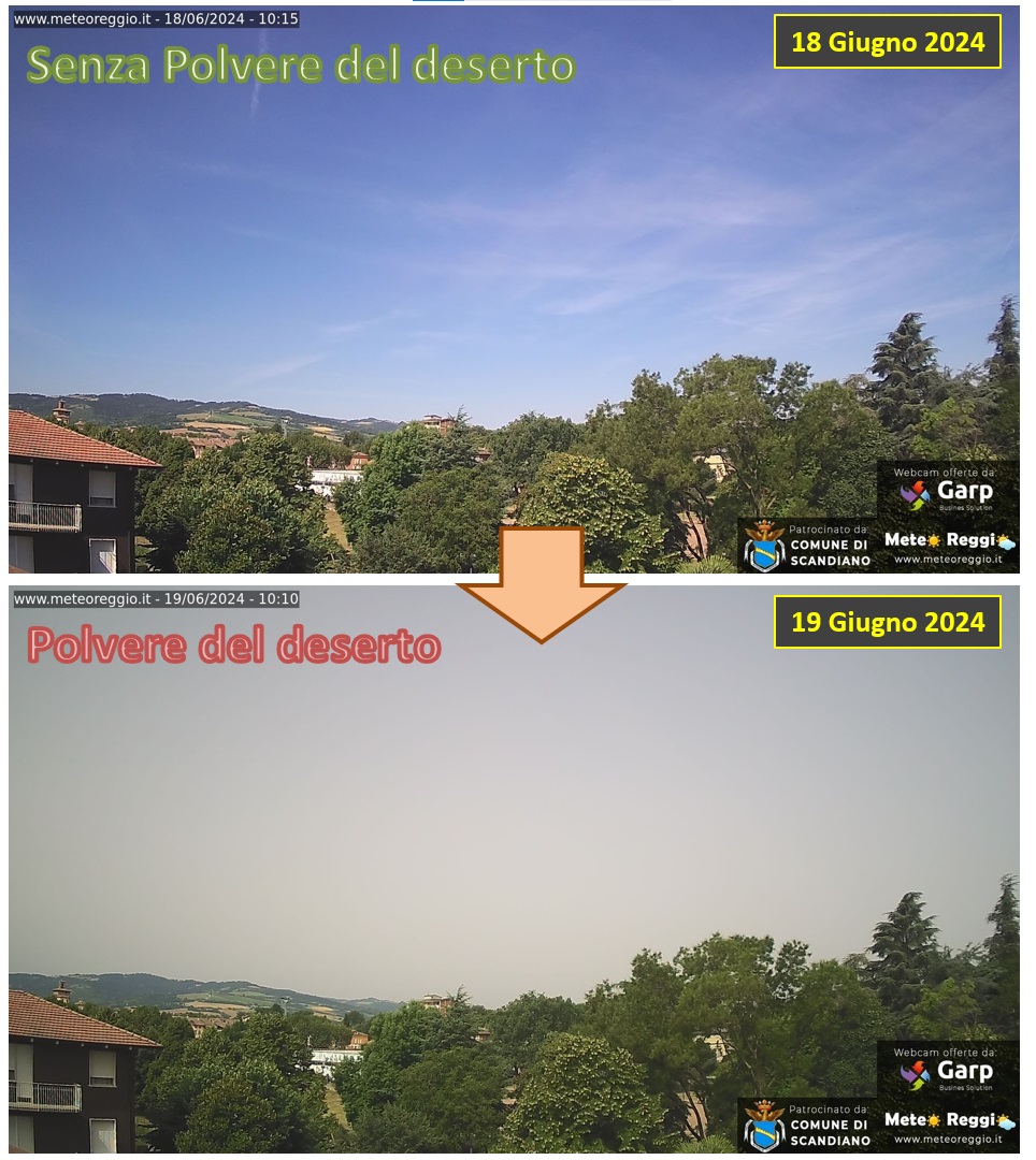 Non troviamo parole migliori per descrivere la differenza nelle tonalità del cielo avvenute in 24 ore. La giornata di oggi dovrebbe essere di un bell'azzurro carico grazie all'assenza delle nuvole. Ma di nuvole ne abbiamo una che con l'umidità non ha nulla a che fare. E' ufficialmente arrivata la polvere del deserto e oggi è sotto gli occhi di tutti e soprattutto sulla testa di tutti.